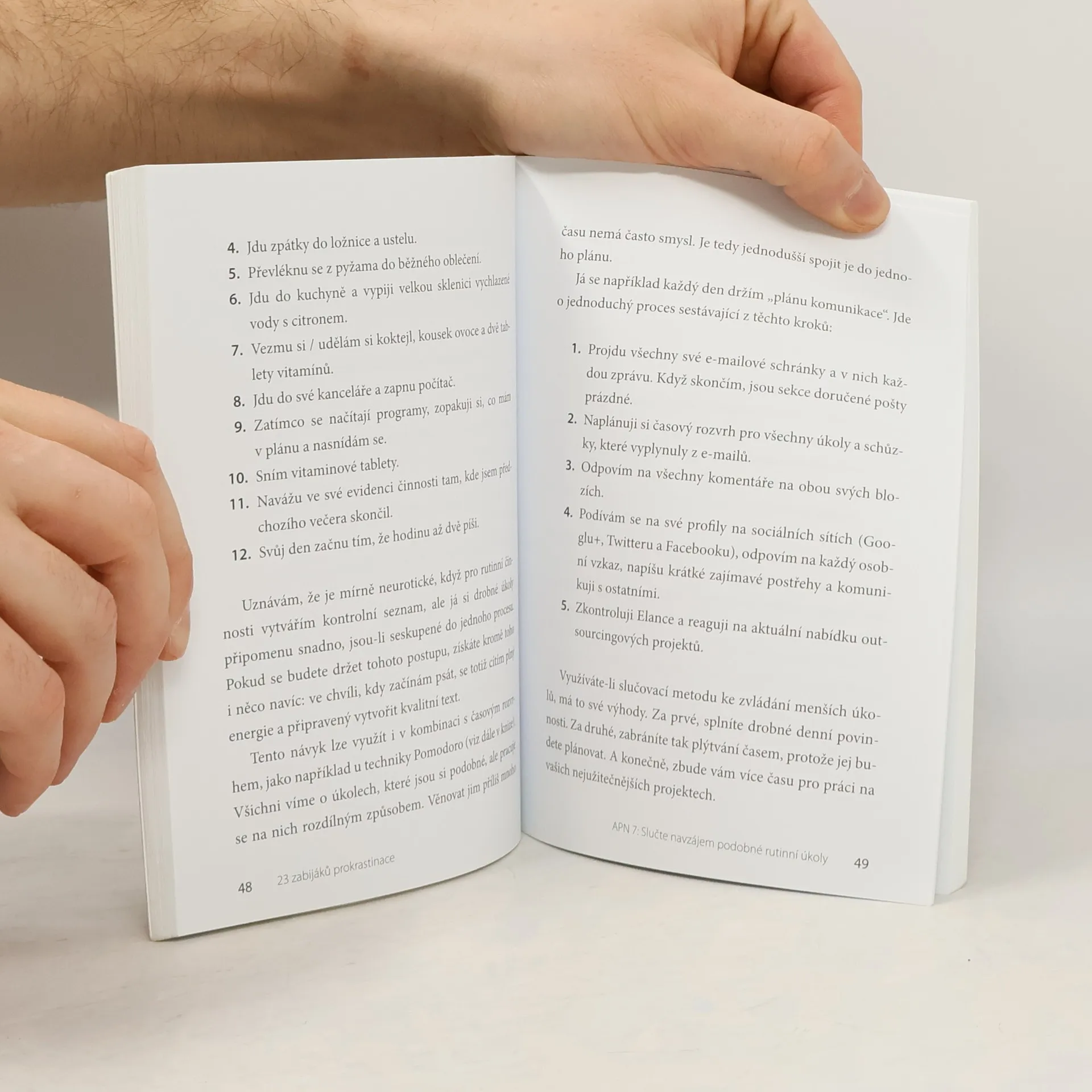 Podtitul: Přestaňte lenošit a jděte za svým cílem Měli byste se soustředit na práci či na učení, místo toho vás ale napadá spousta výmluv, proč se do úkolu nemůžete pustit. Potřebujete zavolat Robertovi, nemáte správné materiály, ořezané tužky nebo zkrátka nevíte, odkud začít. Ať už zní naše "protože" jakkoli, všichni zažíváme okamžiky, kdy prokrastinujeme. Zanechat prokrastinace je však snadné. Opravdu. Stačí jen, abyste si osvojili určité návyky a z nich pak udělali běžnou součást svého života. V této knize najdete přehled nápadů, které vám pomohou vyhnout se každodenní prokrastinaci. Zatímco mnoho knih nabízí pouze seznam tipů, jak na to, zde se dozvíte, proč je určitá strategie funkční, jaká omezující přesvědčení lze s její pomocí překonat a jak ji můžete okamžitě využít ve svém životě. Zkrátka, poznáte hlavní příčiny své prokrastinace a naučíte se, jak nad nimi zvítězit.