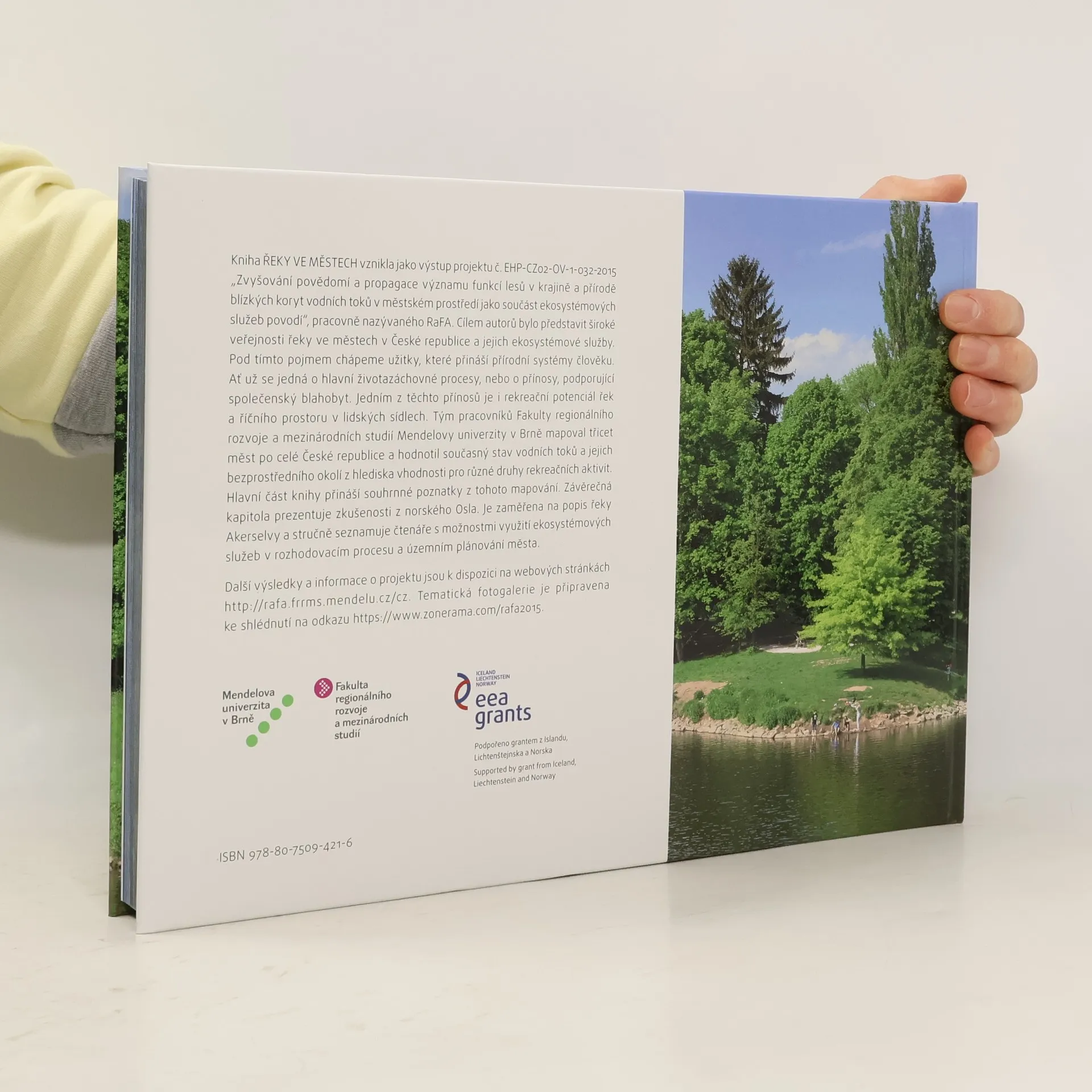 Cílem autorů je představit široké veřejnosti řeky ve městech v České republice a jejich ekosystémové služby. Pod tímto pojmem chápeme užitky, které přináší přírodní systémy člověku. Ať už se jedná o hlavní životazáchovné procesy, nebo o přínosy, podporující společenský blahobyt. Jedním z těchto přínosů je i rekreační potenciál řek a říčního prostoru v lidských sídlech. Tým pracovníků Fakulty regionálního rozvoje a mezinárodních studií Mendelovy univerzity v Brně mapoval třicet měst po celé České republice a hodnotil současný stav vodních toků a jejich bezprostředního okolí z hlediska vhodnosti pro různé druhy rekreačních aktivit. Hlavní část knihy přináší souhrnné poznatky z tohoto mapování. Závěrečná kapitola je zaměřena na popis norské řeky Akerselvy a stručně seznamuje čtenáře s možnostmi využití ekosystémových služeb.