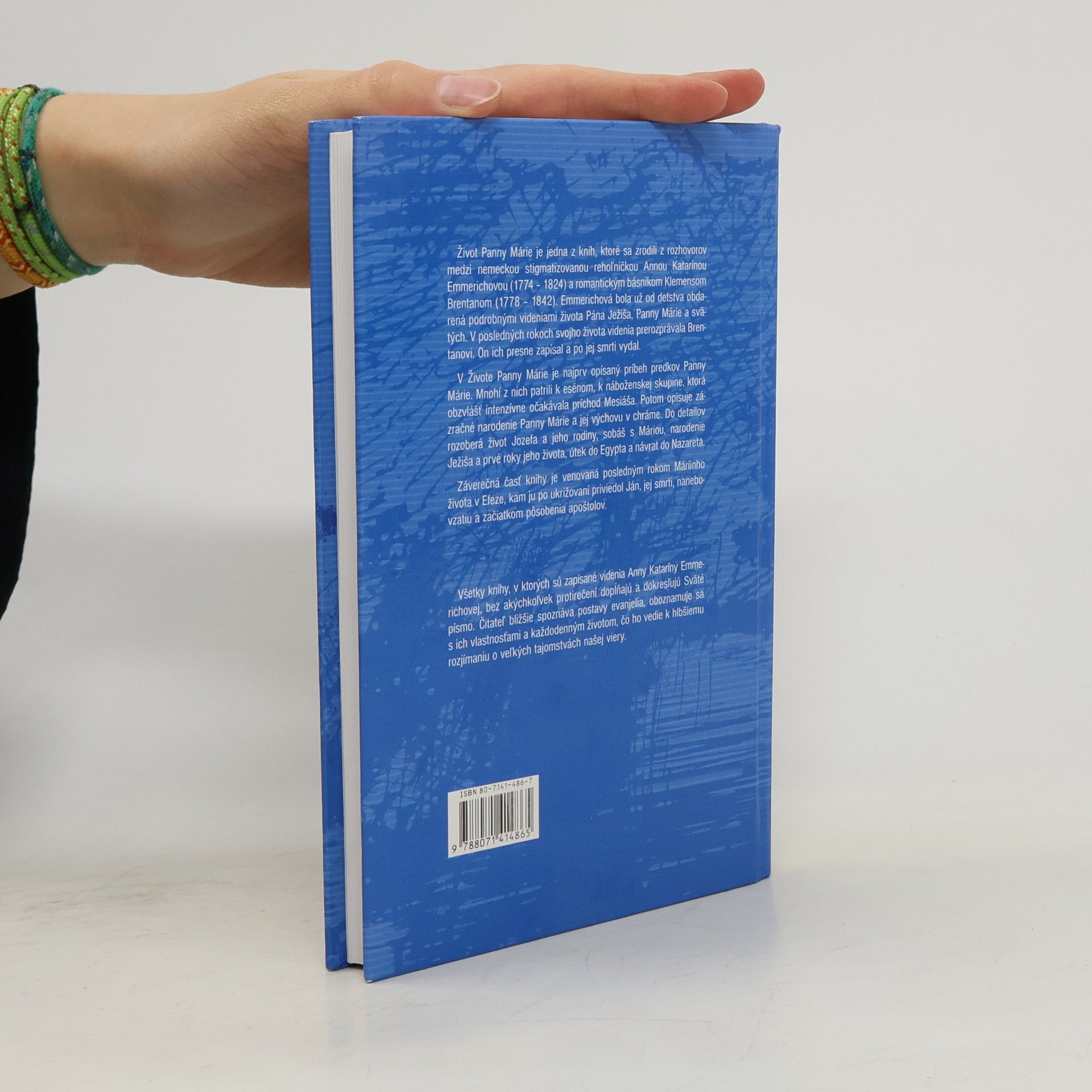 Vo videniach blahoslavenej Anny Kataríny Emmerichovej. Život Panny Márie je jednou z kníh, ktoré sa zrodili z rozhovorov medzi nemeckou stigmatizovanou rehoľníčkou Annou Katarínou Emmerichovou (1774-1824) a romantickým básnikom Klemensom Brentanom (1778-1842). Emmerichová bola už od detstva obdarená podrobnými videniami života Pána Ježiša, Panny Márie a svätých. V posledných rokoch svojho života prerozprávala svoje videnia Brentanovi. On ich presne zapísal a po jej smrti vydal. V Živote Panny Márie je najprv opísaný príbeh predkov Panny Márie. Mnohí z nich patrili k esénom, k náboženskej skupine, ktorá obzvlásť intenzívne očakávala príchod Mesiáša. Potom opisuje zázračné narodenie Panny Márie a jej výchovu v chráme. Do detailov rozoberá život Jozefa a jeho rodiny, sobáš s Máriou, narodenie Ježiša a prvé roky jeho života, útek do Egypta a návrat do Nazareta. Záverečná časť knihy je venovaná posledným rokom Máriinho života v Efeze, kam ju po ukrižovaní priviedol Ján, jej smrti, nanebovzatiu a začiatkom pôsobenia apoštolov.