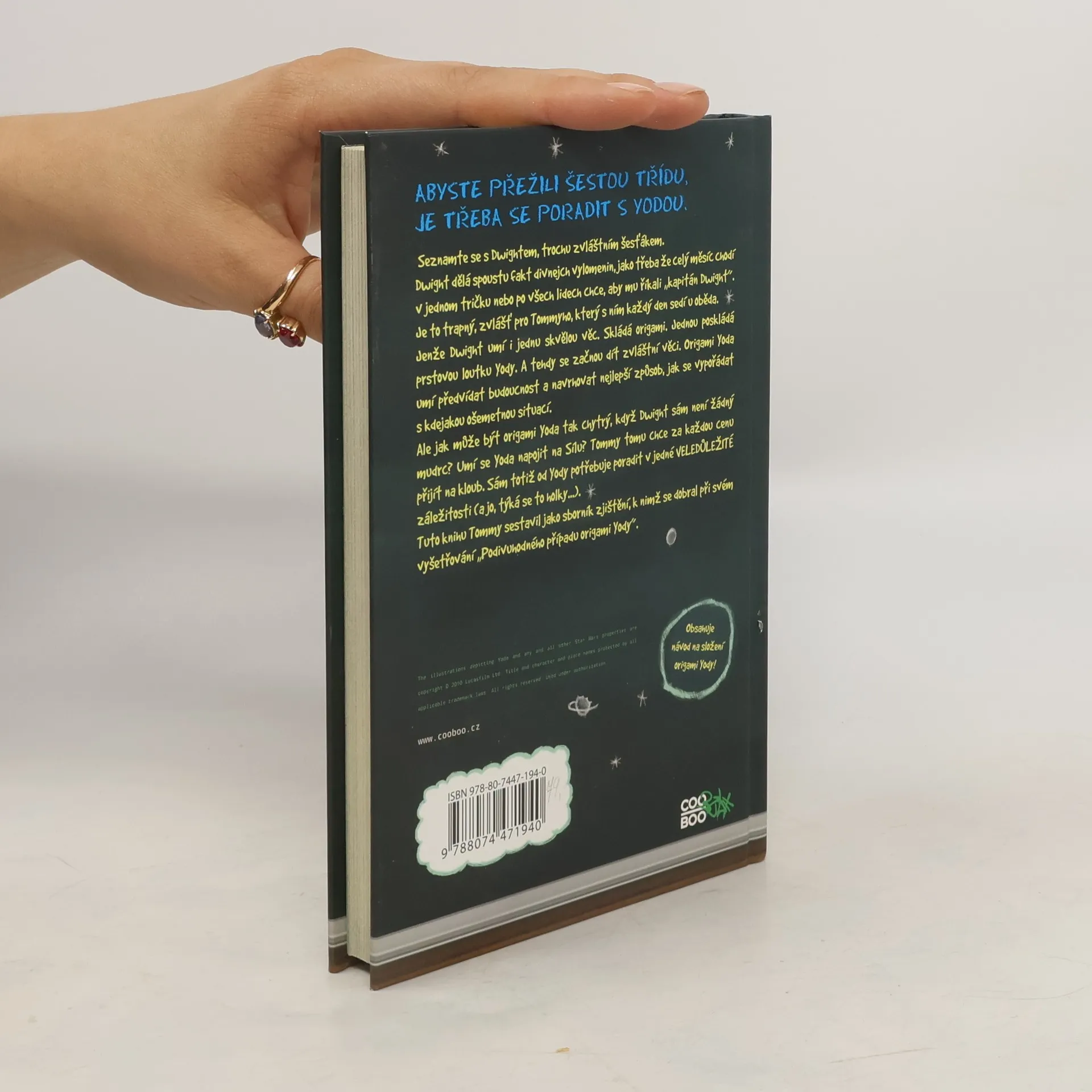 Dwight dělá spoustu výstředností, jako třeba že celý měsíc chodí v jednom tričku nebo po všech lidech chce, aby mu říkali „kapitán Dwight“. Je to trapné, zvlášť pro Tommyho, který s ním každý den sedí u oběda. Jenže Dwight umí i jednu skvělou věc. Skládá origami. Jednou poskládá prstovou loutku Yody. A tehdy se začnou dít zvláštní věci. Origami Yoda umí předvídat budoucnost a navrhovat nejlepší způsob, jak se vypořádat s lecjakou ošemetnou situací.