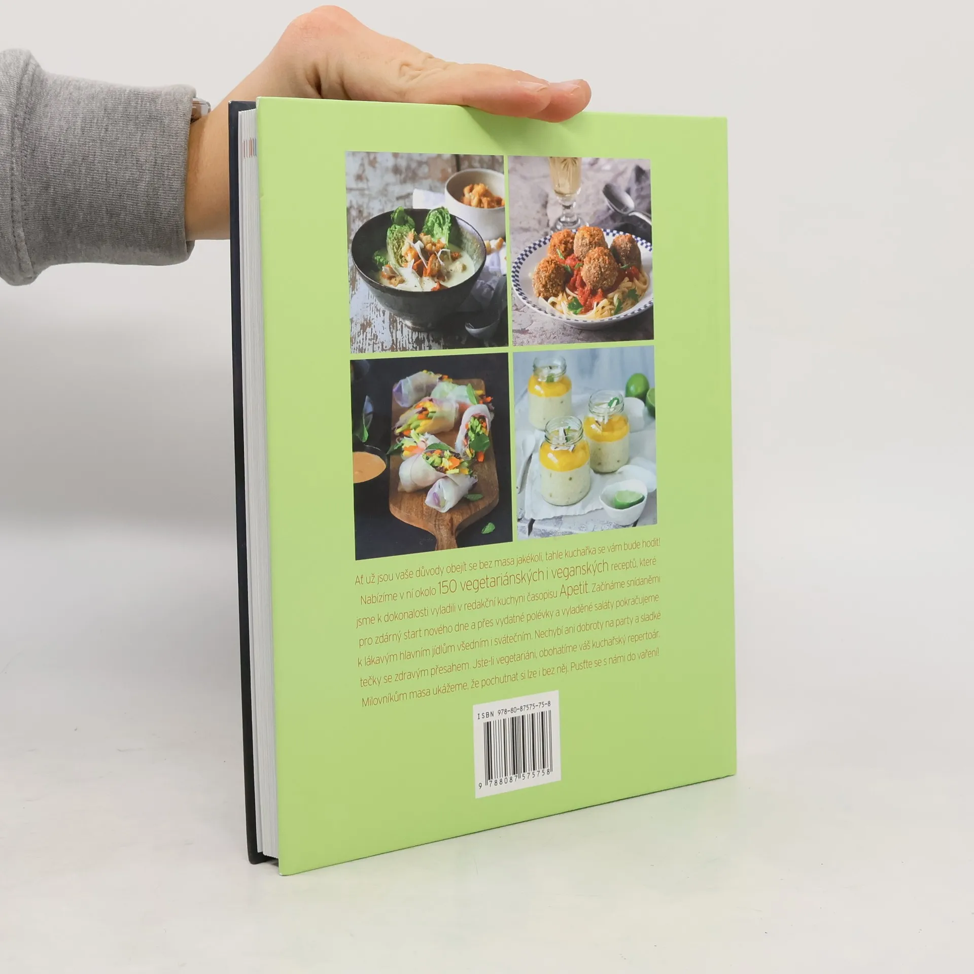 Vegetariánská kuchařka z Edice Apetit nabízí víc než 150 vegetariánských a veganských receptů, které jsme připravili a uvařili v redakční kuchyni časopisu Apetit. Neřídíme se přitom žádnou ideologií – spojovacím prvkem je radost z jídla a vaření. V knize najdete recepty na každý den - všední i sváteční. Začínáme snídaněmi pro zdárný start nového dne a přes vydatné polévky a vyladěné saláty pokračujeme k lákavým jídlům. Nechybí ani dobroty na party a sladké tečky se zdravým přesahem (bezlepkové, bez laktózy, bez cukru atd.). Veganské recepty jsou jasně označeny, u vegetariánských receptů často nabízíme i veganskou varinatu. Kapitoly: Na menší hlad: snídaně a svačiny Pevný základ: polévky Saláty Pro každý den Zvláštní příležitosti Mlsání s přidanou hodnoutou Servis