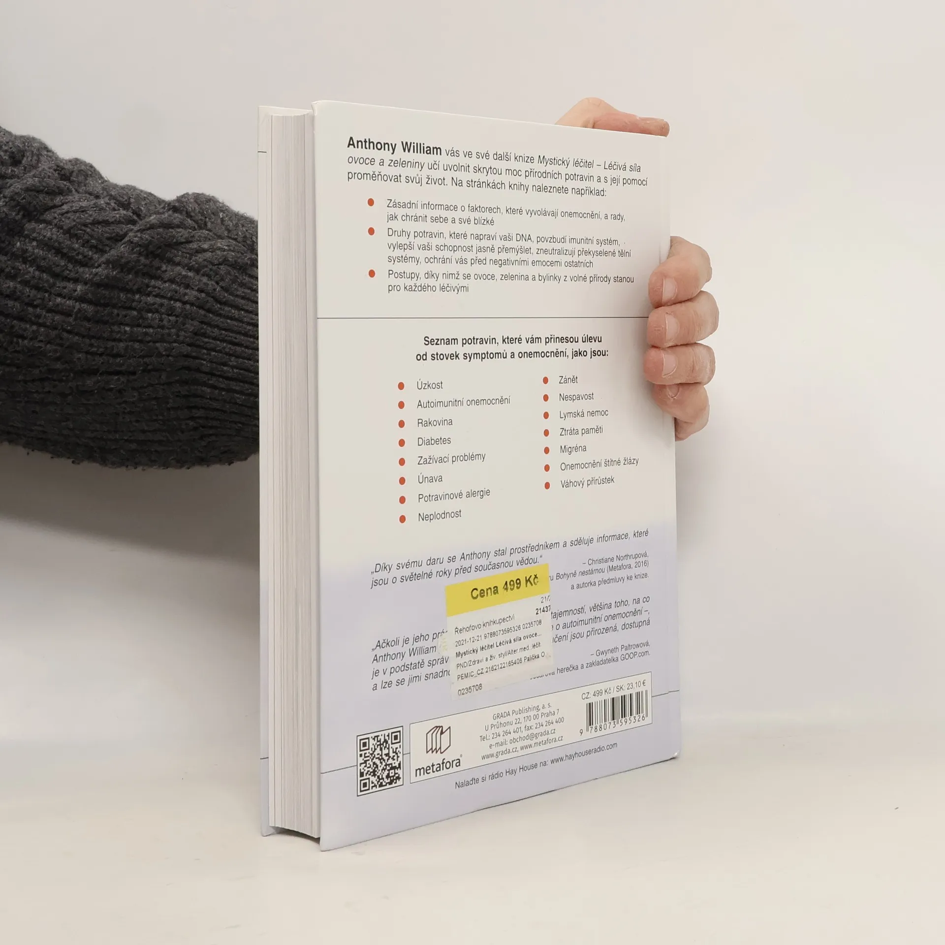ANTHONY WILLIAM coby Mystický léčitel pomohl tisícům lidí uzdravit se z nemocí, které byly buď chybně diagnostikovány, neúčinně léčeny nebo považovány za nevyléčitelné. Božský hlas mu přímo sděluje, co je pravou příčinou bolesti či nemoci konkrétního člověka a co pro své uzdravení každý může udělat. Léčivá síla ovoce a zeleniny pojednává naprosto nově o léčivém potenciálu více než 50 druhů ovoce, zeleniny a bylinek z volné přírody. Díky informacím, které jinde nenajdete, porozumíte vlastnímu zdraví a ochráníte tak sebe a své blízké před utrpením a nemocemi. Odkryjte skrytou sílu ovoce a zeleniny a proměňte svůj život. OBJEVÍTE: •Proč jsou borůvky ovocem vzkříšení, chřest zřídlem mládí a citrony vás pozvednou, kdykoli se dozvíte něco špatného •Nejlepší potraviny pro úlevu od žlučových kamenů, hypertenze, psychické otupělosti, onemocnění štítné žlázy, migrény a stovek dalších symptomů a nemocí •Konkrétní léčivou sílu kiwi, okurek, manga, ředkviček a mnoha dalších •Nahlédnete do mechanismu nezvladatelných chutí, pochopíte, jak využít stres ve váš prospěch a jak klíčovou roli hraje ovoce v otázce plodnosti Většina informací v knize se dramaticky liší od názorů konvenční medicíny, takže neočekávejte stále stejně omílaná doporučení. Připravte se na nový pohled na potraviny jako na účinné nástroje, které vás uzdraví a přinesou vám pohodu i dobrou kondici.