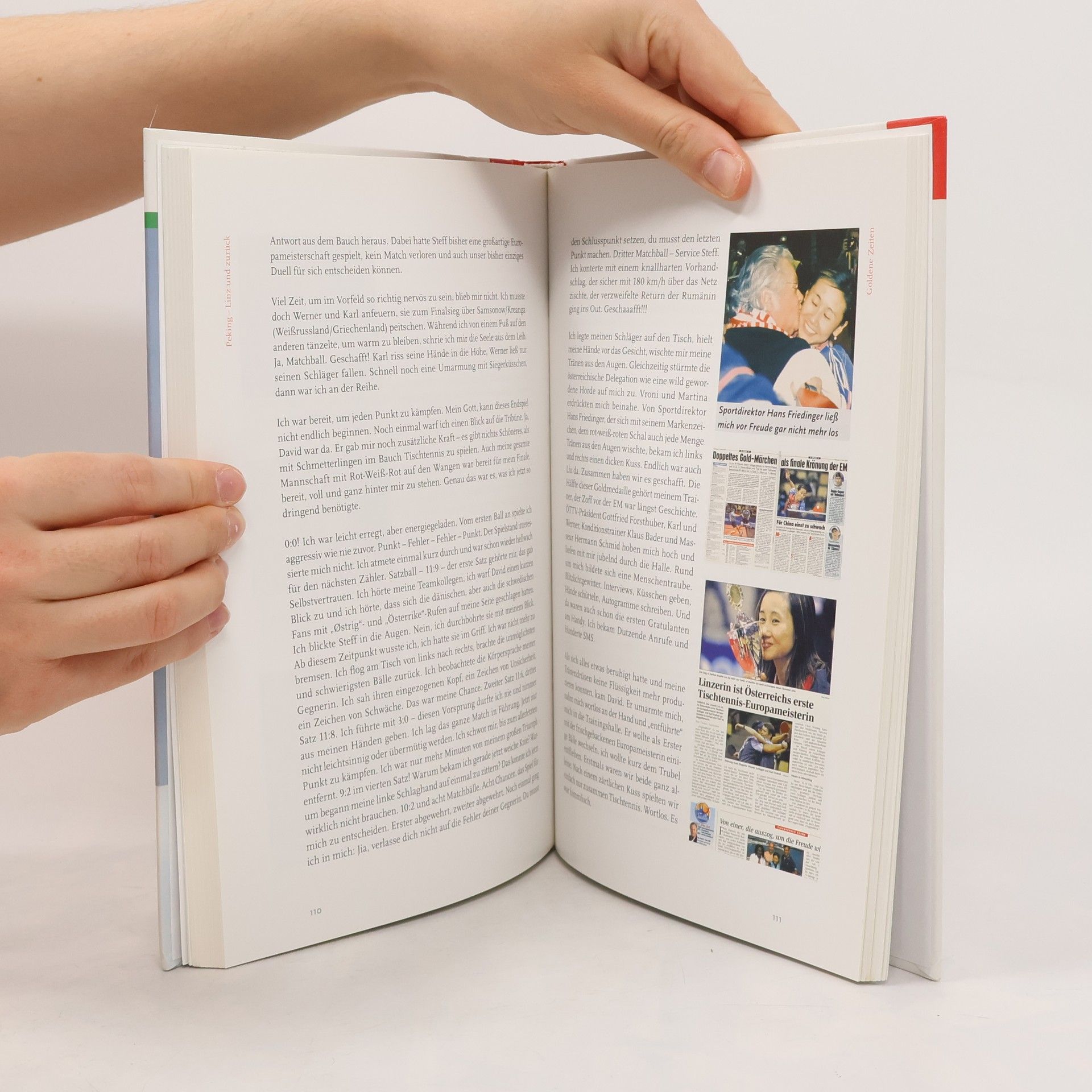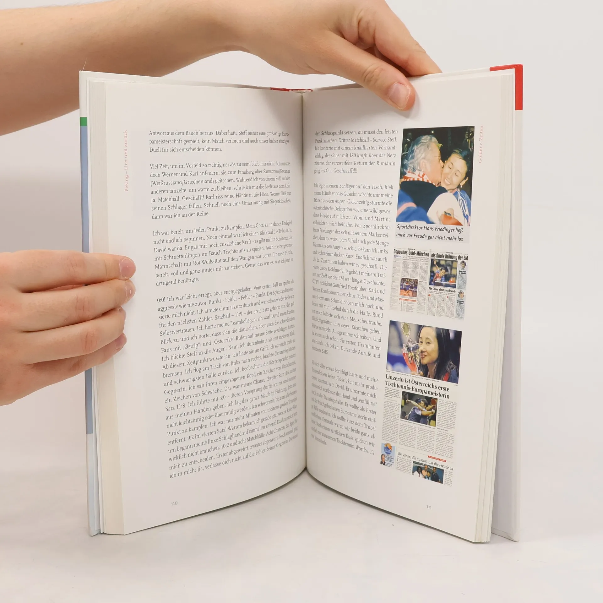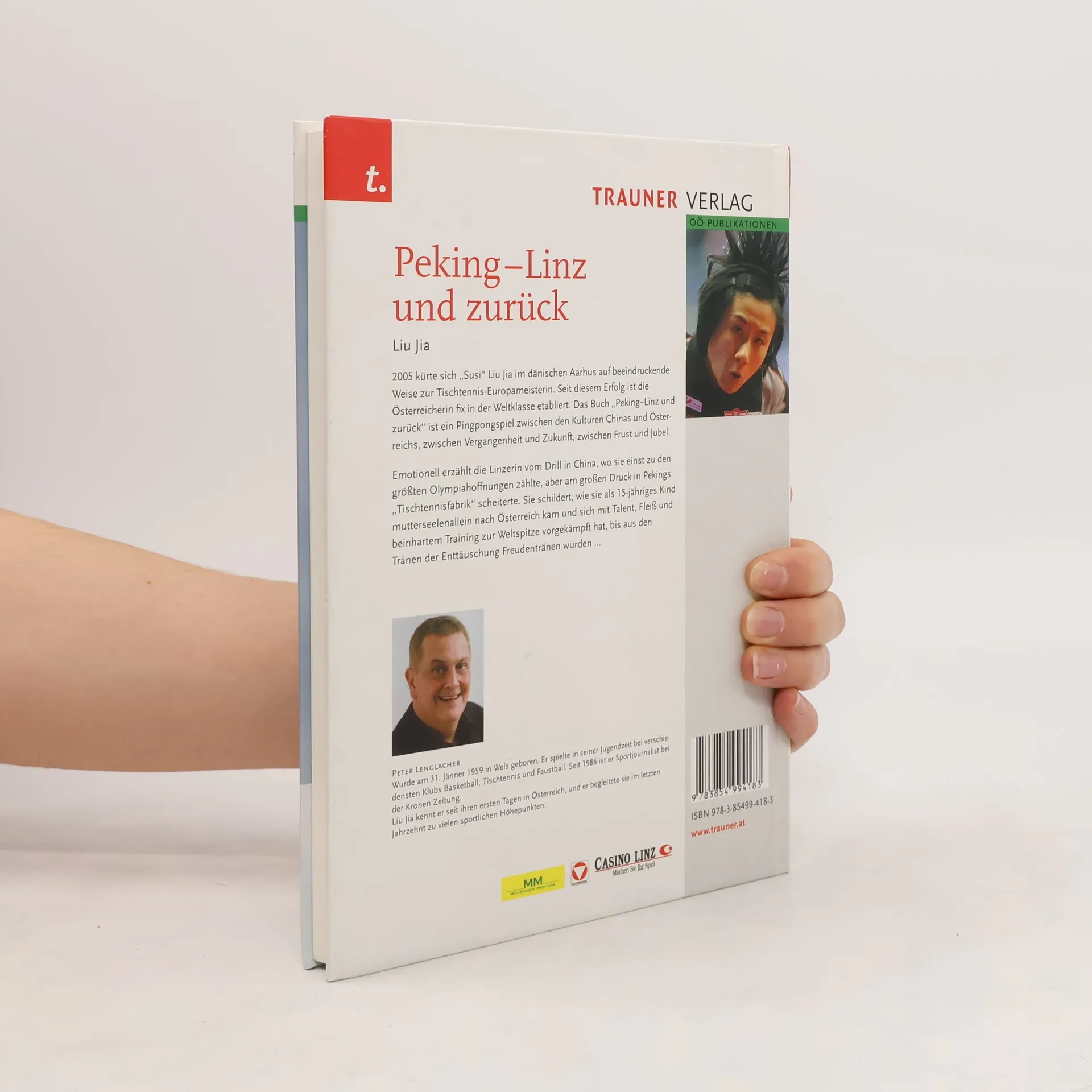 Das Buch „Peking–Linz und zurück“ ist ein Pingpongspiel zwischen den Kulturen Chinas und Österreichs, zwischen Vergangenheit und Zukunft, zwischen Frust und Jubel. Emotionell erzählt die Linzerin vom Drill in China, wo sie einst zu den größten Olympiahoffnungen zählte, aber am großen Druck in Pekings „Tischtennisfabrik“ scheiterte. Sie schildert, wie sie als 15-jähriges Mädchen mutterseelenallein nach Österreich kam und sich mit Talent, Fleiß und beinhartem Training zur Weltspitze vorgekämpft hat, bis aus den Tränen der Enttäuschung Freudentränen wurden. 2008 kehrt Liu Jia als österreichische Olympiahoffnung in ihre Heimatstadt zurück.