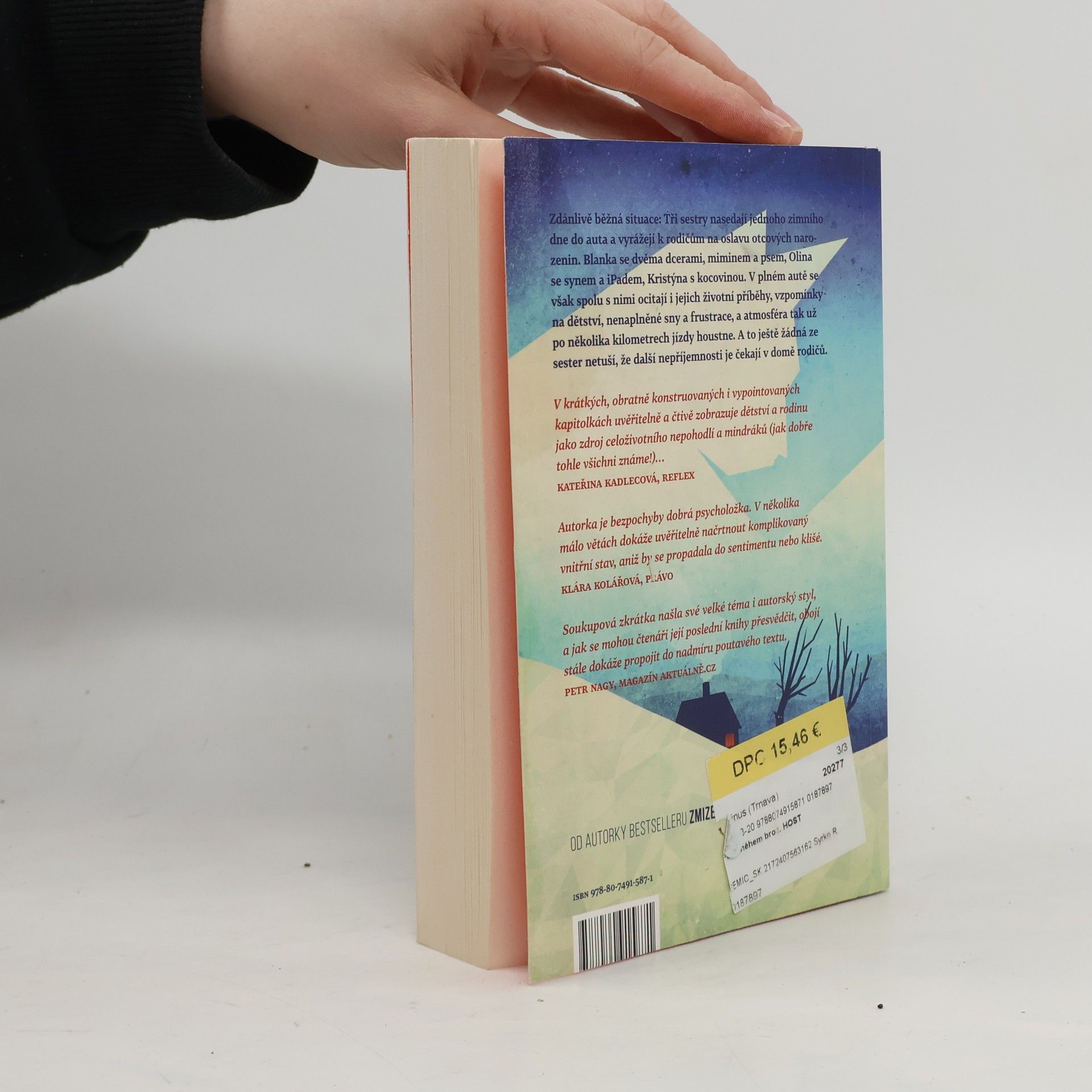 Zdánlivě běžná situace: Tři sestry nasedají jednoho zimního dne do auta a vyrážejí k rodičům na oslavu narozenin svého otce. Blanka se dvěma dcerami, miminem a psem, Olina se synem a tabletem, Kristýna s kocovinou. V jednom autě se však spolu s nimi ocitají i jejich životní příběhy, vzpomínky na dětství, nenaplněné sny a frustrace a sedmimístné Volvo XC se tak už po několika kilometrech jízdy mění v napěchovaný papiňák, který každou chvíli hrozí výbuchem. A to ještě žádná ze sester netuší, že další drama je čeká v domě rodičů. V rodinných vztazích a na první pohled obyčejných událostech dokáže Soukupová zachytit otisky spletitých osudů, dávných zážitků a frustrací s takovou bravurou, že před čtenářem vyvstávají jako jedinečná životní dramata. Autorčin typický způsob vyprávění s předstíranou ledabylostí a neokázale podtrhuje autenticitu příběhu a vtahuje do něj čtenáře natolik, že se sám stává jedním z pasažérů auta jedoucího na rodinnou oslavu.