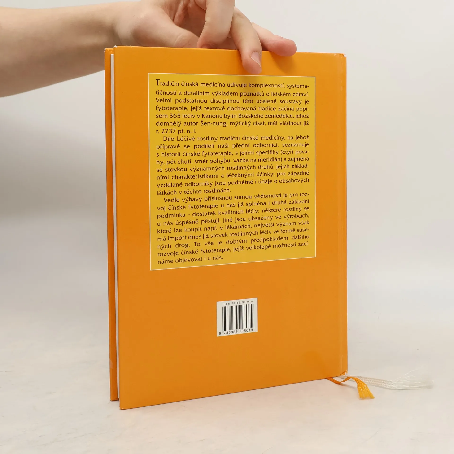 Kniha seznamuje v úvodu čtenáře s čínskou tradiční medicínou, vycházející především z taoismu, a s čínskou fytoterapií, významnou disciplínou tradiční čínské medicíny. Poté následují popisy léčivých rostlin, jejich zeměpisné rozšíření a léčebné využití. Jednotlivé charakteristiky rostlin jsou řazeny abecedně podle latinských názvů, uvedena jsou rovněž jejich česká a čínská jména. Text doplňují kresby a fotografie rostlin. Závěr knihy pak tvoří rejstříky nejdůležitějších pojmů, u nichž nechybí ani odkaz na patřičné strany knihy, kde je podáno bližší vysvětlení. Tato publikace o čínské fytoterapii, na jejímž vzniku se podíleli naši přední odborníci, by měla představovat první díl třídílné série o čínské tradiční medicíně. Obsahuje jak informace o tradičním čínském lékařství, tak i základní botanické informace o rostlinách.