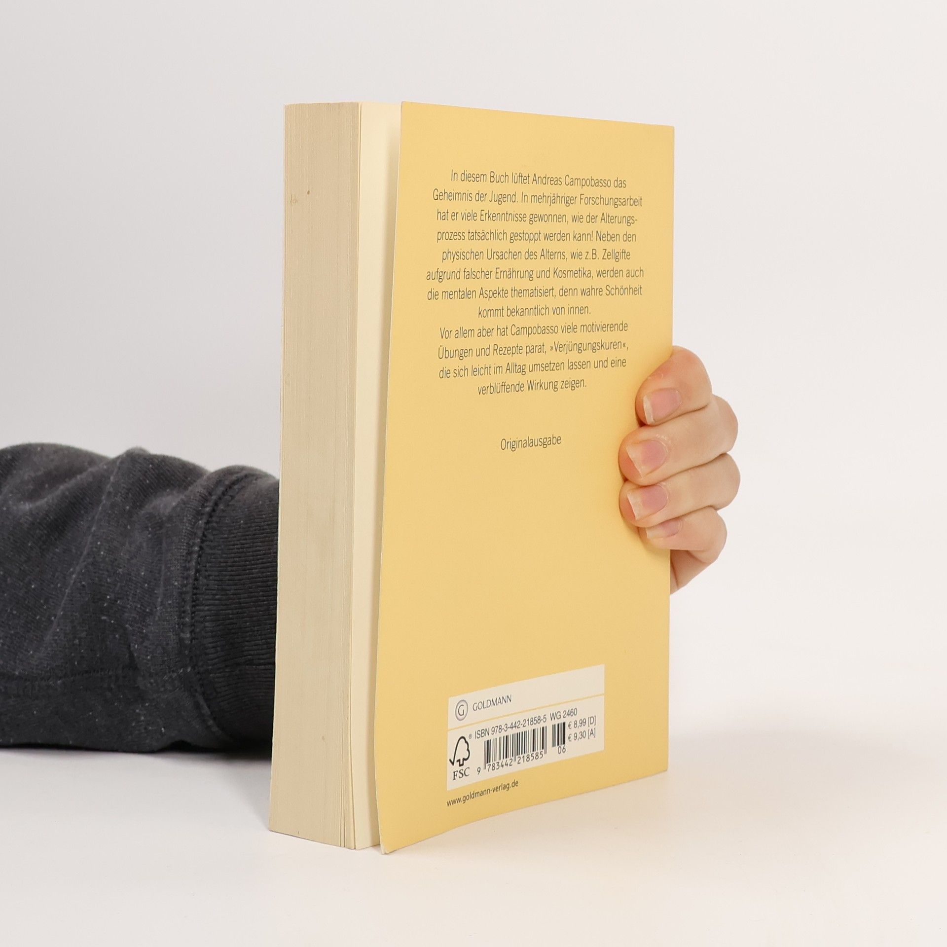 Anti-Aging im Trend der Zeit Medien und Werbung führen uns täglich vor Augen, dass „jung und schön“ für Erfolg steht. Andreas Campobasso lüftet das Geheimnis der Jugend. In mehrjähriger Forschungsarbeit und durch Selbstversuche hat er viele Erkenntnisse gewonnen, wie der Alterungsprozess zu stoppen ist. Neben den physischen Ursachen des Alterns, wie z. B. Zellgifte aufgrund falscher Ernährung und untauglicher Kosmetika, werden auch die mentalen Aspekte thematisiert, denn wahre Schönheit kommt bekanntlich von innen. Vor allem aber hat Campobasso jede Menge Rezepte und motivierende Übungen parat, „Verjüngungskuren“, die sich im Alltag leicht umsetzen lassen und eine verblüffende Wirkung zeigen.Anschaulich, leicht verständlich und sehr motivierend geschrieben.