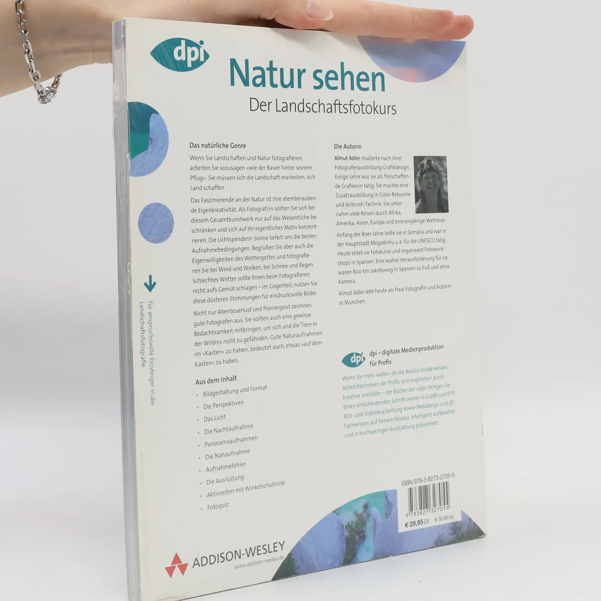 Einzigartiger Einsteigerkurs in die Landschaftsfotografie. Lernen Sie von einer Autorin, die als „Weltreisende“ ihren Blick schulte. Sie zeigt Ihnen in allen Facetten die Fotografie einer Landschaft mit der digitalen Spiegelreflexkamera. An allen Orten: vom Wasser über Berge, Wald, Wüste bis zur Wirkung des Himmels. Alle gestalterischen Themen: Perspektive, Ausschnitt Bildaussage, Licht zu jeder Tageszeit, Nachtaufnahme, Kunstlicht. Fotografieren Sie alle Variationen: Von der Nah- bzw. Makroaufnahme bis zum Panoramabild. Die ideale Ausrüstung kommt natürlich auch nicht zu kurz.