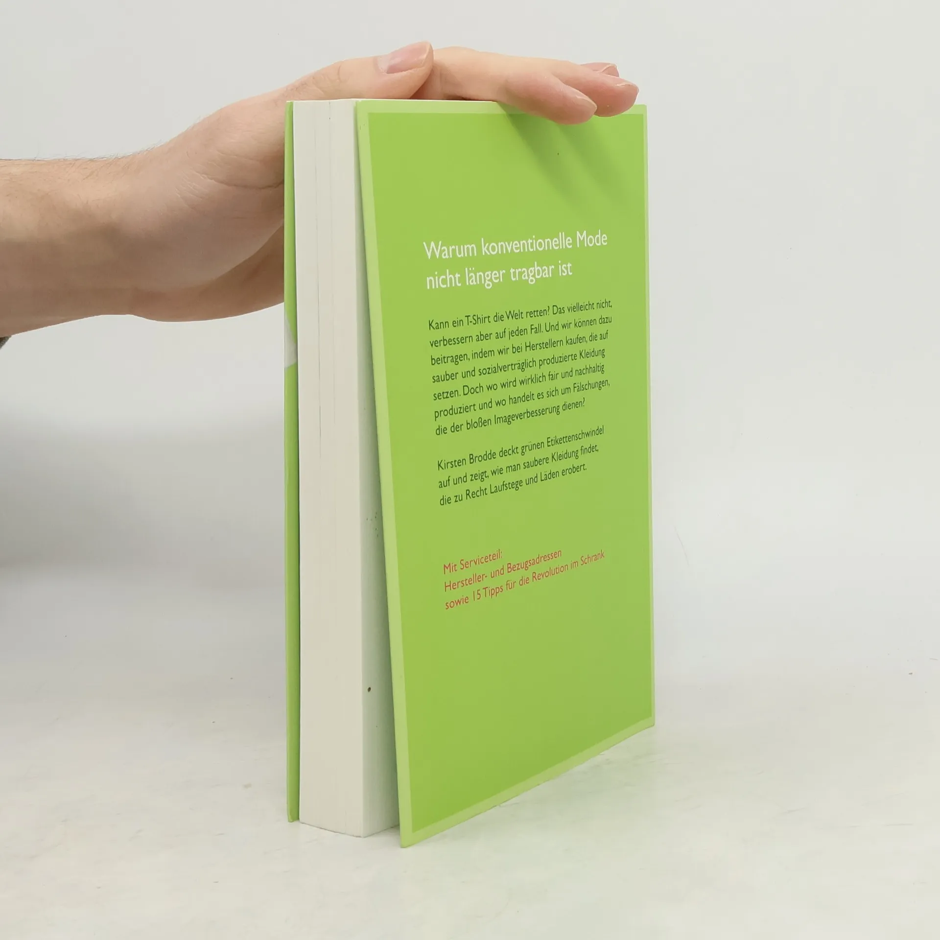 Warum konventionelle Mode nicht länger tragbar ist. Kann ein T-Shirt die Welt retten? Vielleicht nicht, aber es kann sie verbessern. Indem wir bei Herstellern kaufen, die auf sauber und sozialverträglich produzierte Kleidung setzen, können wir einen Beitrag leisten. Doch wo wird tatsächlich fair und nachhaltig produziert, und wo handelt es sich um Fälschungen zur Imageverbesserung? Kirsten Brodde deckt den grünen Etikettenschwindel auf und zeigt, wie man saubere Kleidung findet, die zu Recht in Geschäften und auf Laufstegen präsent ist. Die Rohstoffe stammen aus biologischem Anbau, die Erzeuger werden fair bezahlt, und die Verarbeitung erfolgt mit ökologisch optimierten Chemikalien in Betrieben mit hohen Sozialstandards. Grüne Mode war noch nie so schön und aufregend wie heute. Im Gegensatz zu Biolebensmitteln, die ein einheitliches EU-Siegel tragen, fehlen bei der Öko-Mode verbindliche Standards, was Etikettenschwindel begünstigt. Oft wird „Greenwashing“ betrieben, um das Image und den Umsatz der Hersteller zu steigern. Kirsten Brodde zeigt allen, die verantwortungsbewusst konsumieren möchten, wie sie glaubwürdige Kleidung und Unternehmen finden. Sie ist Textilexpertin bei Greenpeace und der Plattform utopia.de. Bio-Mode erlebt einen Boom, und grüne Designer sowie Öko-Labels erobern den Markt. Der Service-Teil enthält Hersteller- und Bezugsadressen sowie Tipps zum Waschen, Pflegen und Entsorgen.