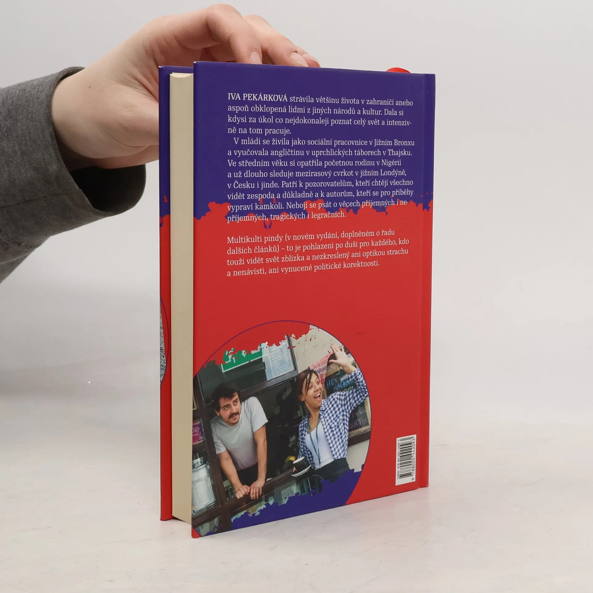 Iva Pekárková strávila většinu života v zahraničí anebo aspoň obklopená lidmi z jiných národů a kultur. Dala si kdysi za úkol co nejdokonaleji poznat celý svět a intenzivně na tom pracuje. V mládí pracovala jako sociální pracovnice v Jižním Bronxu a vyučovala angličtinu v uprchlických táborech v Thajsku. Ve středním věku si opatřila početnou rodinu v Nigérii a už dlouho sleduje mezirasový cvrkot v jižním Londýně, v Česku i jinde. Patří k pozorovatelům, kteří chtějí všechno vidět zespoda a důkladně a k autorům, kteří se pro příběhy vypraví kamkoli. Nebojí se psát o věcech příjemných i nepříjemných, tragických i legračních. Multikulti pindy (v novém vydání, doplněném o řadu dalších článků) – to je pohlazení po duši každého, kdo touží vidět svět zblízka a nezkreslený ani optikou strachu a nenávisti, ani vynucené politické korektnosti.