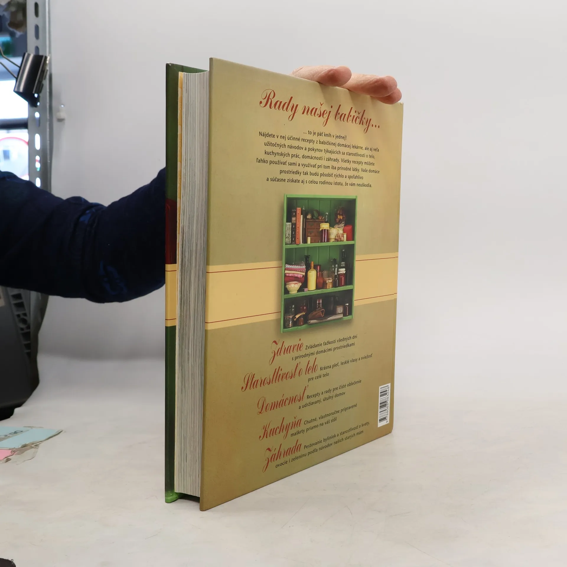 Odpoveď na tieto a mnohé ďalšie otázky ponúka praktická príručka Rady našej babičky. Bohato ilustrovaná kniha obsahuje 1200 generáciami overených nápadov, tipov, receptov a šikovných riešení – od vlastnoručne vyrobeného bylinkového octu až po rastlinné hnojivo, od olejov do kúpeľov až po škrobiace prípravky a od čistiacich prostriedkov až po ochranu proti moľom.