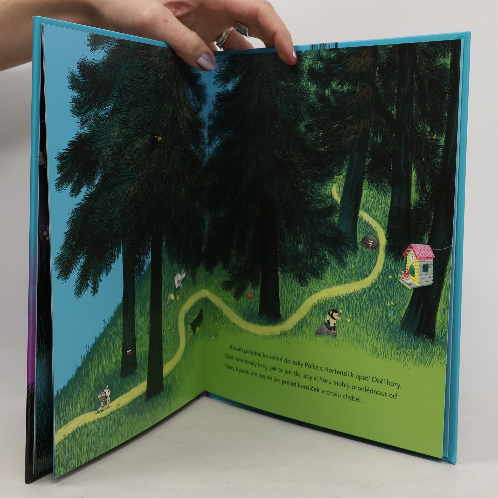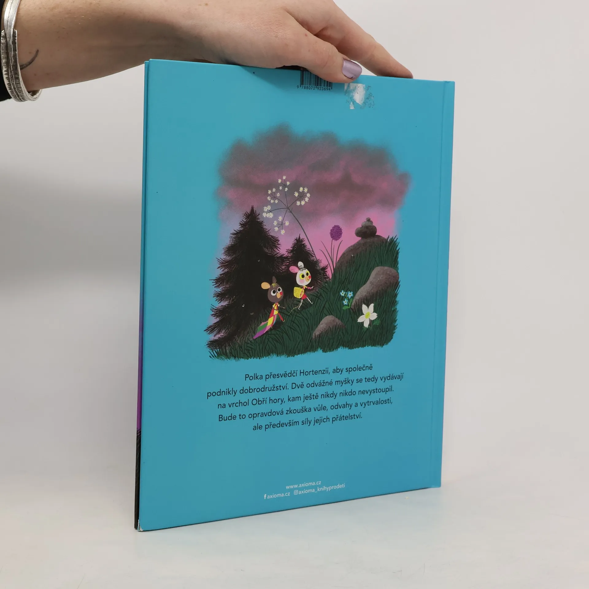 Polka přesvědčí Hortenzii, aby společně podnikly dobrodružství. Dvě odvážné myšky se tedy vydávají na vrchol obří hory, kam ještě nikdy nikdo nevystoupil. Bude to opravdová zkouška vůle, odvahy a vytrvalosti, ale především síly jejich přátelství. Kniha s nádhernými ilustracemi Marca Boutavanta je určena dětem od 3 let.