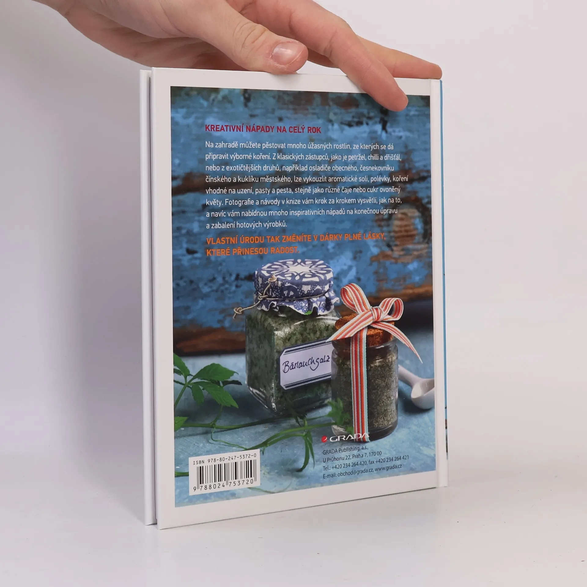 Vášnivá zahradnice Barbara Krasemann nasbírala za 25 let strávených na své rozlehlé zahradě o 8500 m2 obrovské množství poznatků. V této knize představuje své vlastní recepty a nápady, a v její zahradě snad není jediná rostlina, kterou by neproměnila v lahůdku nebo výrobek užitečný pro tělo a duši. Každé rostlině je věnována dvoustrana, kde je popsán přesný postup a pro lepší názornost je připojen obrazový doprovod. Takto zpracované suroviny vypadají přímo skvěle a nabízejí se zároveň jako výborný dárek. Podle autorčiných návodů si tak můžete připravit různé aromatizované soli, koření do polévky nebo na grilování, pesta na těstoviny, bylinkové čaje, rozmanité přísady a ochucovadla, krásně naaranžované však mohou také posloužit jako dekorace do bytu či jej osvěžit svou vůní. Nanejvýš vhodná knížka pro všechny, kdo hledají inspiraci kolem sebe pro zhotovení krásných věcí.