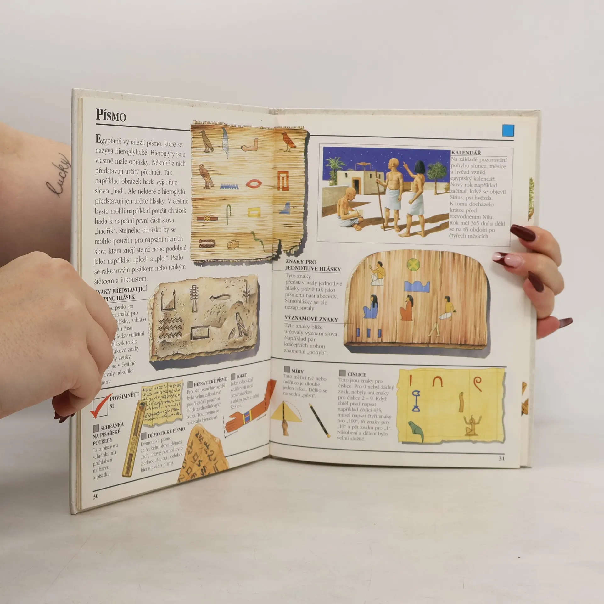 Tato poutavá kniha vypráví o Egyptu a obyvatelích, přibližuje nám svou velice bohatou historii, předvádí umění, zemědělství a řemeslnickou výrobu, zpětně přehrává stavbu monumentálních pyramid a spoustu dalších věcí. Je pěkně ilustrovaná, což také přispívá k dobrému dojmu z této knihy.