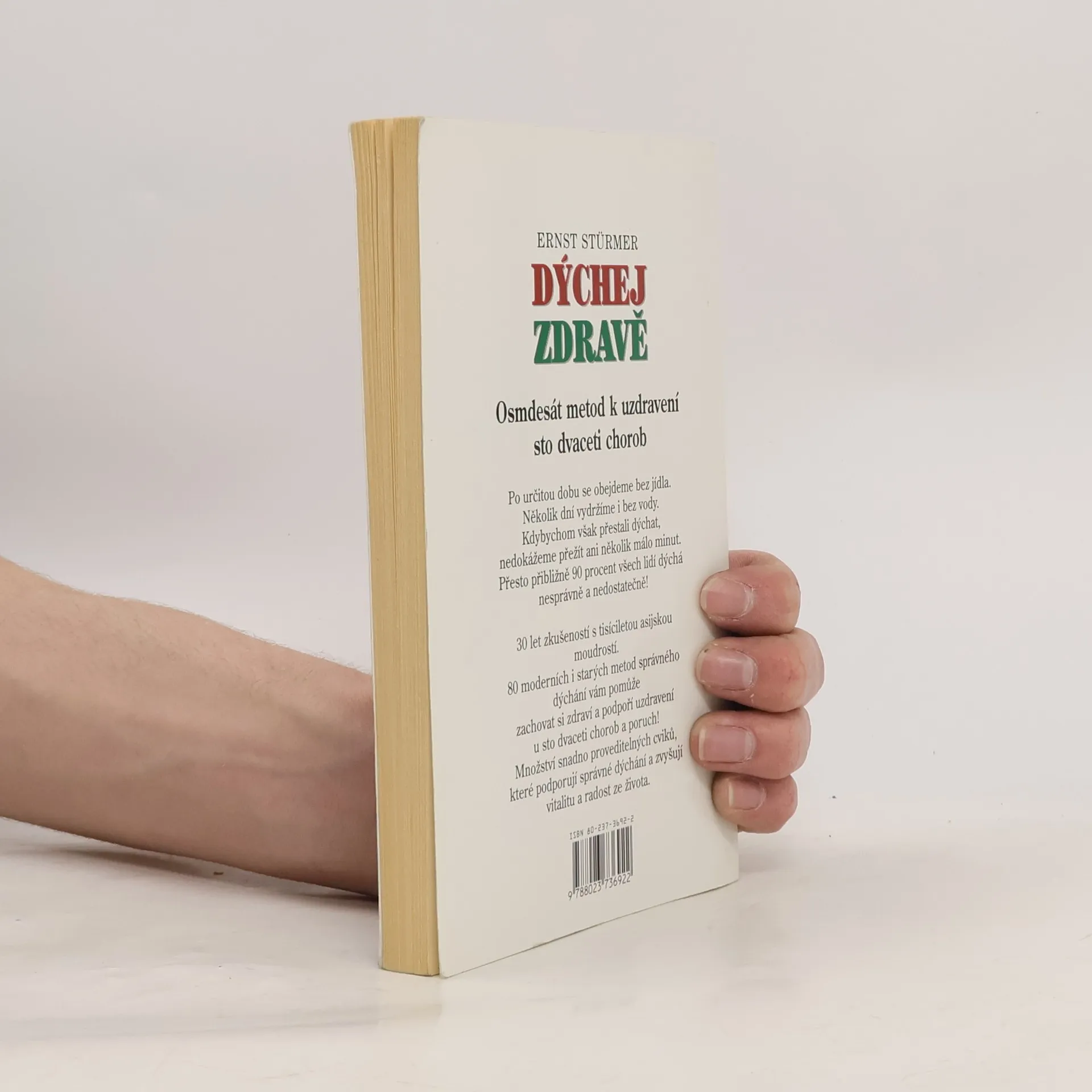 Po určitou dobu se obejdeme bez jídla. Několik dní vydržíme i bez vody. Kdybychom však přestali dýchat, nedokážeme přežít ani několik málo minut. Přesto přibližně 90 procent všech lidí dýchá nesprávně a nedostatečně! 30 let zkušeností s tisíciletou asijskou moudrostí. 80 moderních i starých metod správného dýchání vám pomůže zachovat si zdraví a podpoří uzdravenínu sto dvaceti chorob a poruch! Množství snadno proveditelných cviků, které podporují správné dýchání a zvyšují vitalitu a radost ze života.