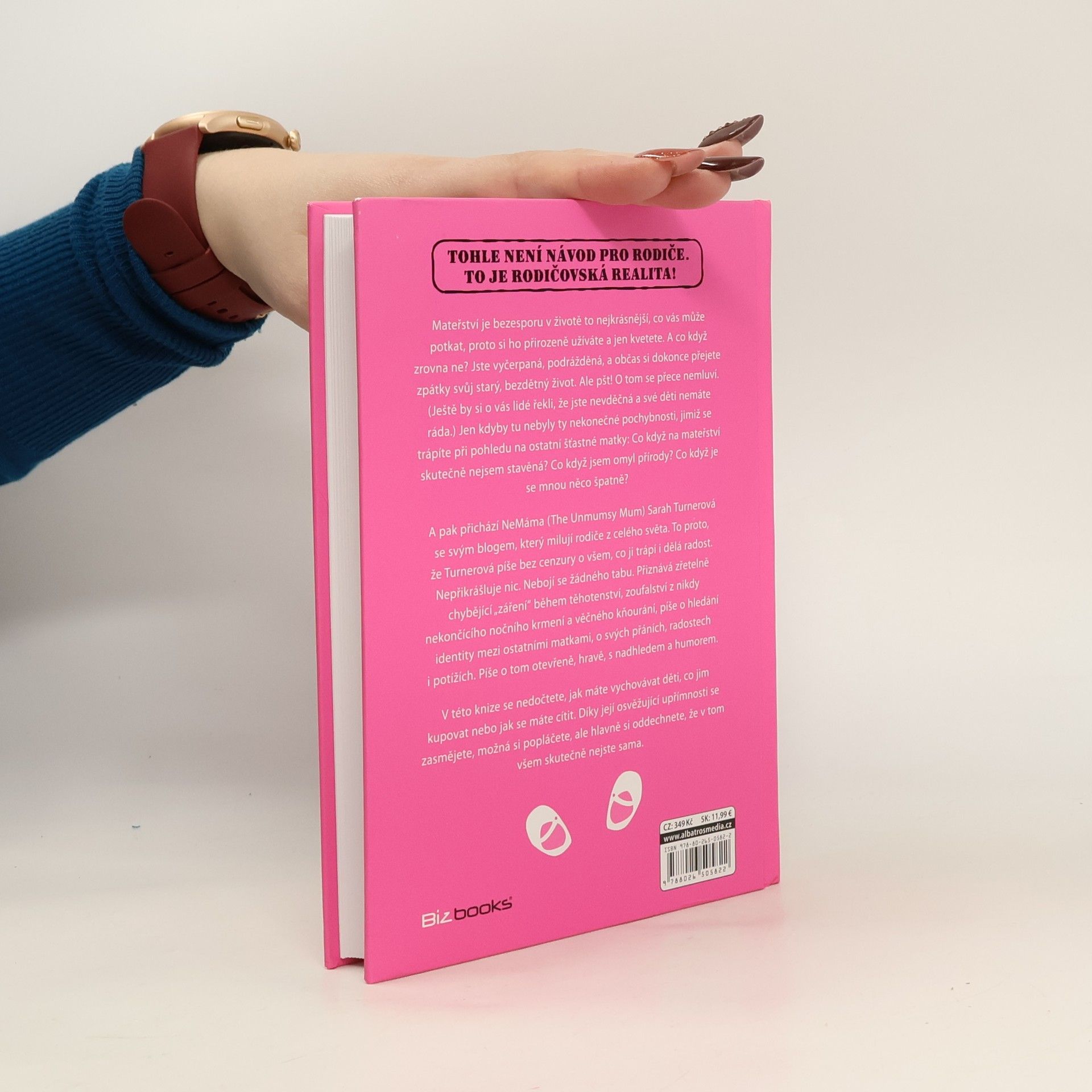 Tohle není návod pro rodiče. To je rodičovská realita! Mateřství je bezesporu v životě to nejkrásnější, co vás může potkat, proto si ho přirozeně užíváte a jen kvetete. A co když zrovna ne? Jste vyčerpaná, podrážděná a občas si dokonce přejete zpátky svůj starý, bezdětný život. Ale pšt!, o tom se přece nemluví. (Ještě by si o vás lidé řekli, že jste nevděčná a své děti nemáte ráda.) Jen kdyby tu nebyly ty nekonečné pochybnosti, kterými se trápíte při pohledu na ostatní šťastné matky: Co když na mateřství skutečně nejsem stavěná? Co když jsem omyl přírody? Co když je se mnou něco špatně? A pak přichází NeMáma (The Unmumsy Mum) Sarah Turnerová se svým blogem, který milují rodiče z celého světa. To proto, že Turnerová píše bez cenzury o všem, co ji trápí i dělá radost. Nepřikrášluje nic. Nebojí se žádného tabu. Přiznává zřetelně chybějící „záření“ během těhotenství, zoufalství z nikdy nekončícího nočního krmení a věčného kňourání, píše o hledání identity mezi ostatními matkami, o svých přáních, radostech i potížích. Píše o tom otevřeně, hravě, s nadhledem a humorem. V této knize se nedočtete, jak máte vychovávat děti, co jim kupovat nebo jak se máte cítit. Díky její osvěžující upřímnosti se zasmějete, možná si popláčete, ale hlavně si oddechnete, že v tom všem skutečně nejste sama.