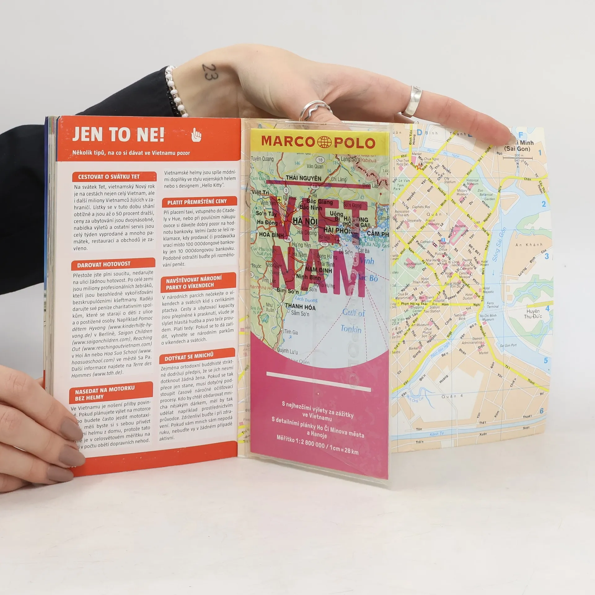 Praktický a přehledný kapesní průvodce s velkým množstvím informací a cestovním atlasem. Přináší nejzajímavější cestovatelské cíle Vietnamu. Kromě detailního popisu oblasti obsahuje také mnoho konkrétních tipů a informací (historie, doporučené trasy, ubytování, nákupy, výlety, cestování s dětmi, sport a jiné aktivity, gastronomie, zábava, svátky a slavnosti, půjčovny aut, otevírací doby a podobně). - součástí plán města Ho Chi Minh - součástí skládací mapa Vietnamu v měřítku 1: 2 800 000