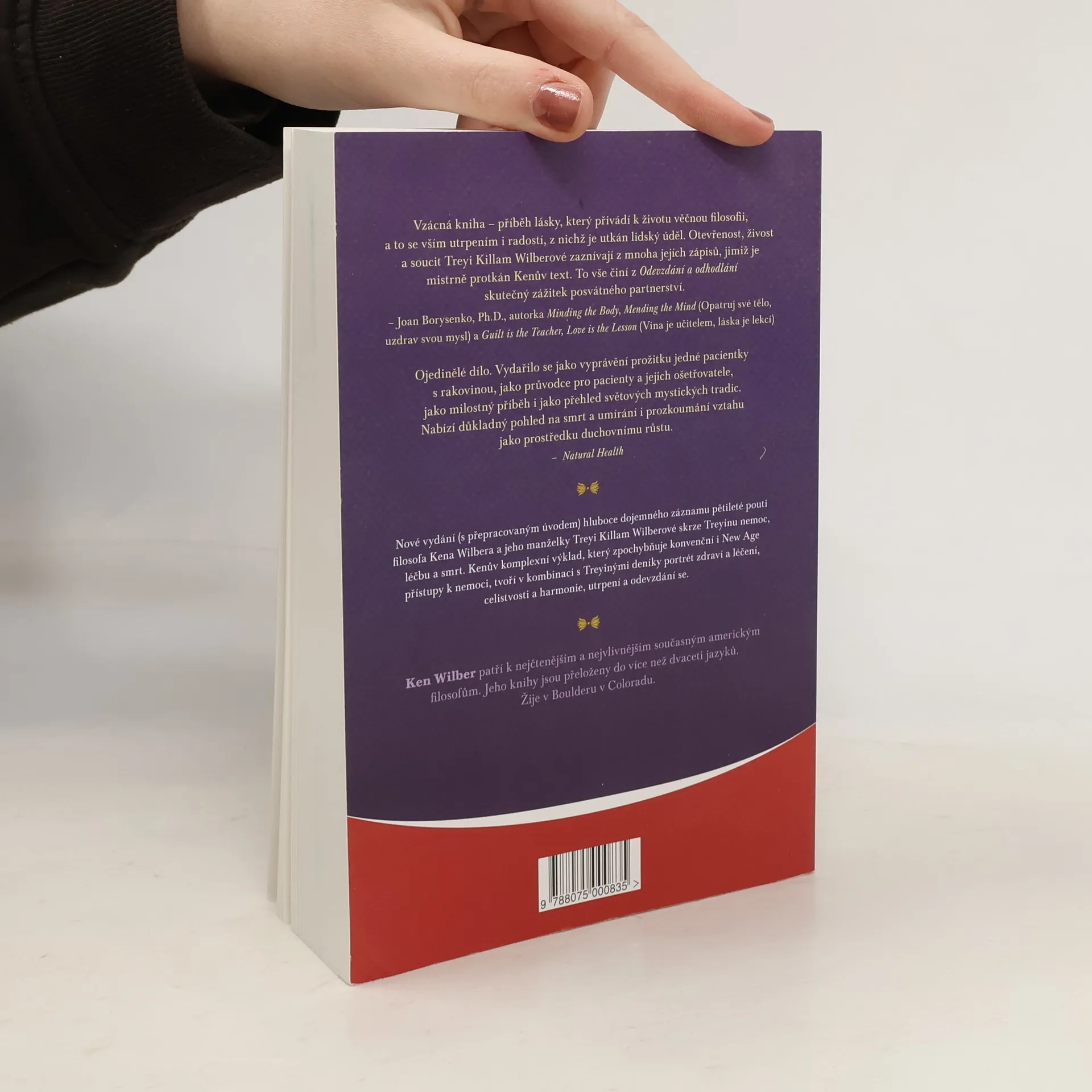 Nové vydání (s přepracovaným úvodem) hluboce dojemného záznamu pětileté pouti filosofa Kena Wilbera a jeho manželky Treyi Killam Wilberové skrze Treyinu nemoc, léčbu a smrt. Kenův komplexní výklad, který zpochybňuje konvenční i New Age přístupy k nemoci, tvoří v kombinaci s Treyinými deníky portrét zdraví a léčení, celistvosti a harmonie, utrpení a odevzdání se. Ken Wilber patří k nejčtenějším a nejvlivnějším současným americkým filosofům. Jeho knihy jsou přeloženy do více než dvaceti jazyků. Žije v Boulderu v Coloradu.