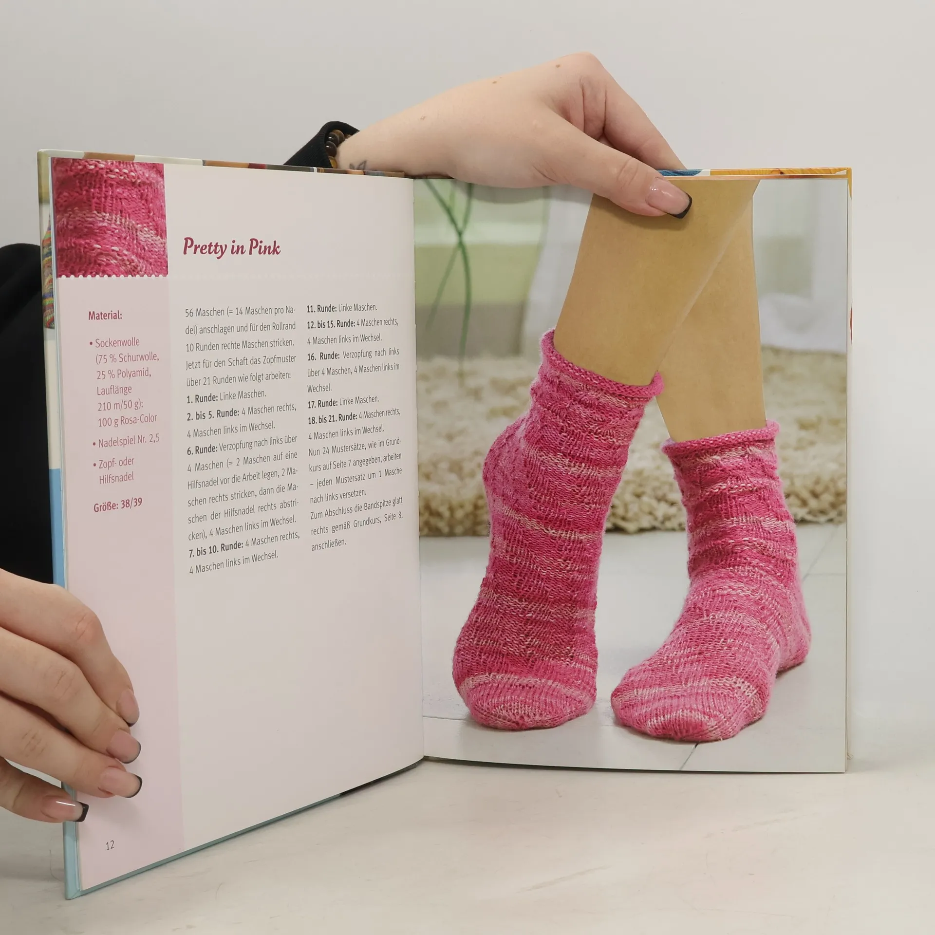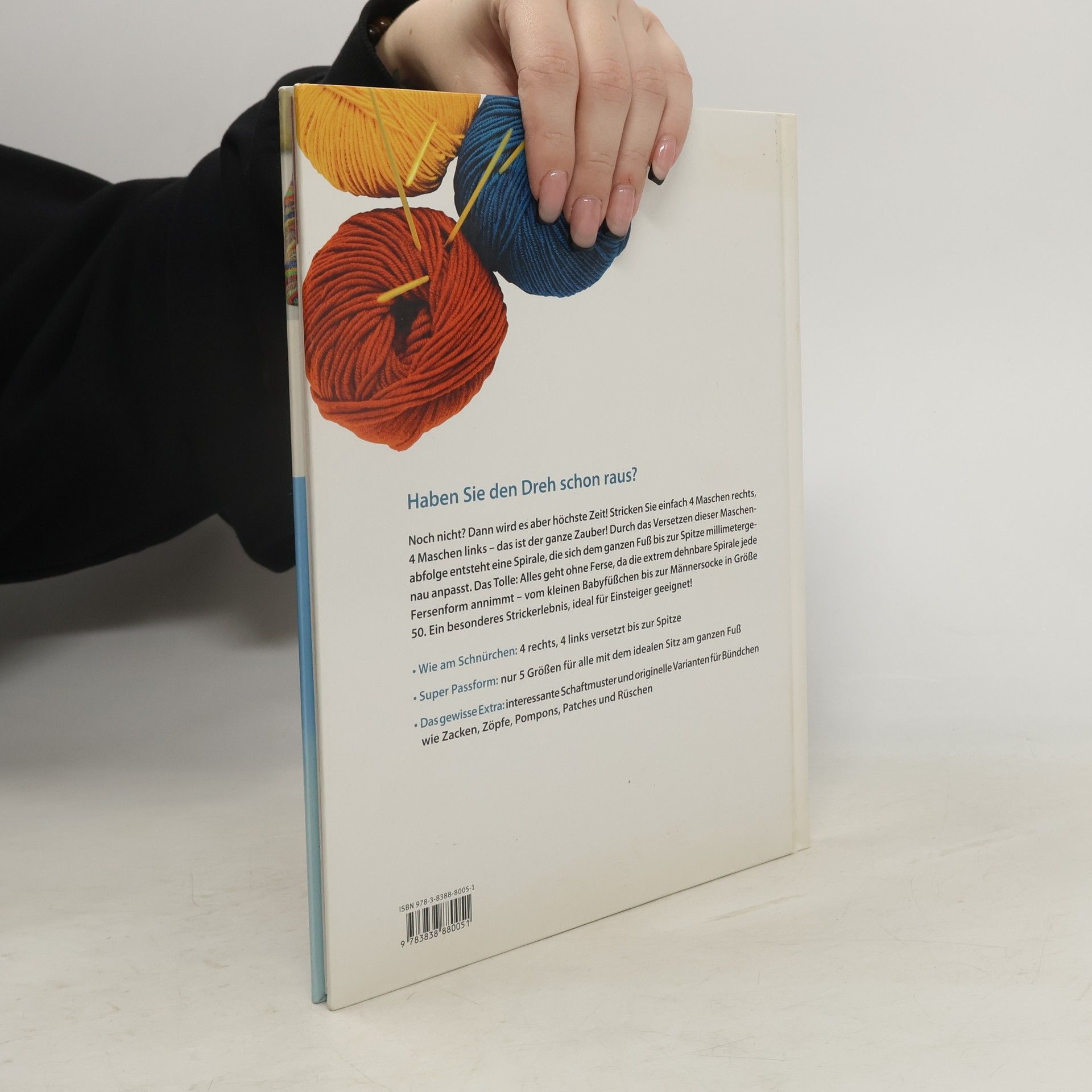 Die leichteste Art Socken zu stricken 4 rechts, 4 links – das ist der ganze Zauber! Durch das Versetzen dieser Maschenabfolge entsteht eine Spirale, die sich dem ganzen Fuß millimetergenau anpasst – bis zur Spitze. Diese wird als einfache Bändchenspitze gestrickt. Und die Ferse? Sie entfällt komplett, da die extrem dehnbare Spirale jede Fersenform annimmt – vom kleinen Babyfüßchen bis zur Männersocke in Größe 50. - Immer geradeaus: 4 rechts, 4 links bis zur einfachen Bändchenspitze - Super Passform: nur 4 Größen für alle mit idealem Sitz am ganzen Fuß - Ideal für Strick-Einsteiger: kurze Anleitungen, Foto-Grundkurs „Stricken lernen“ und „Spiral-Socken stricken“ mit Größentabelle
