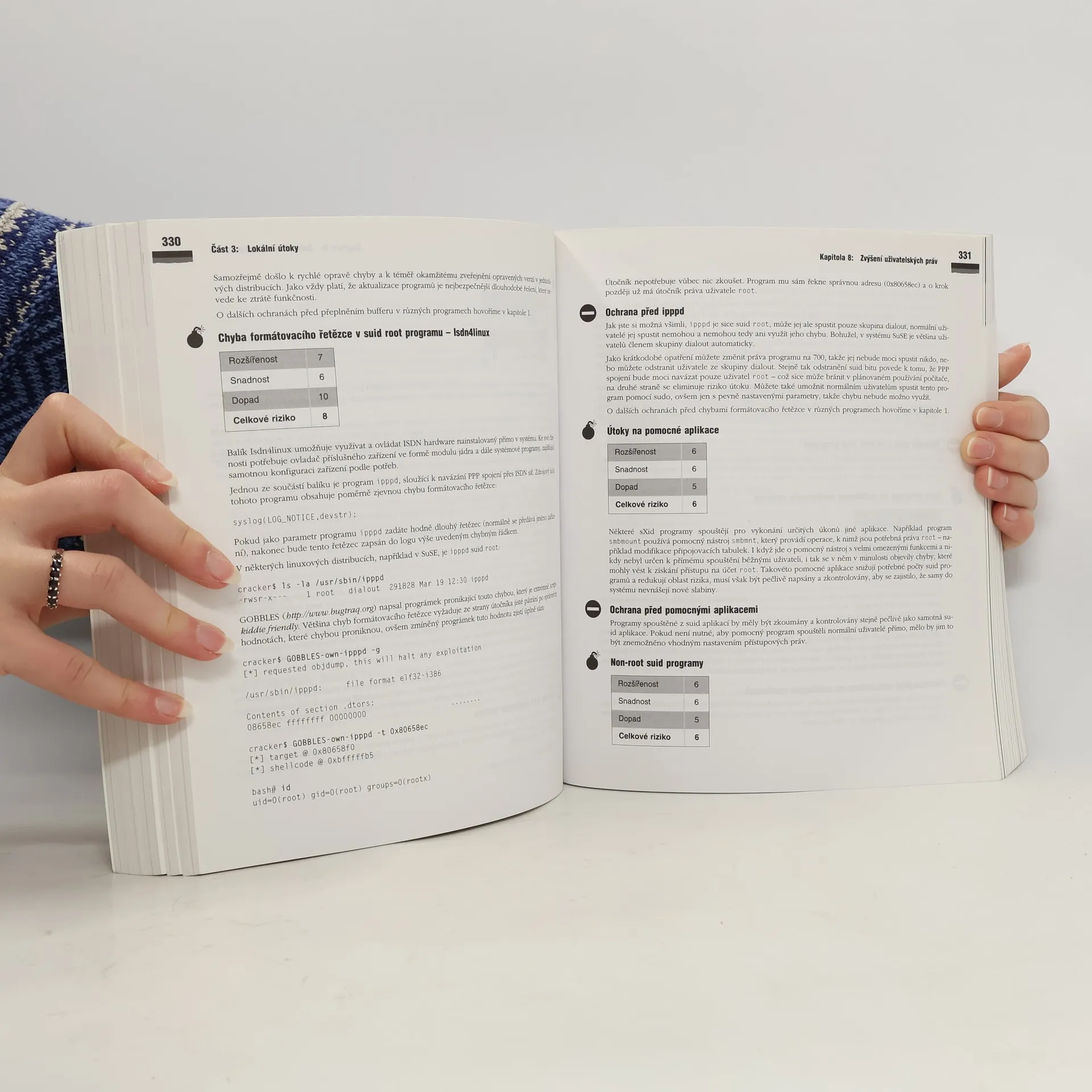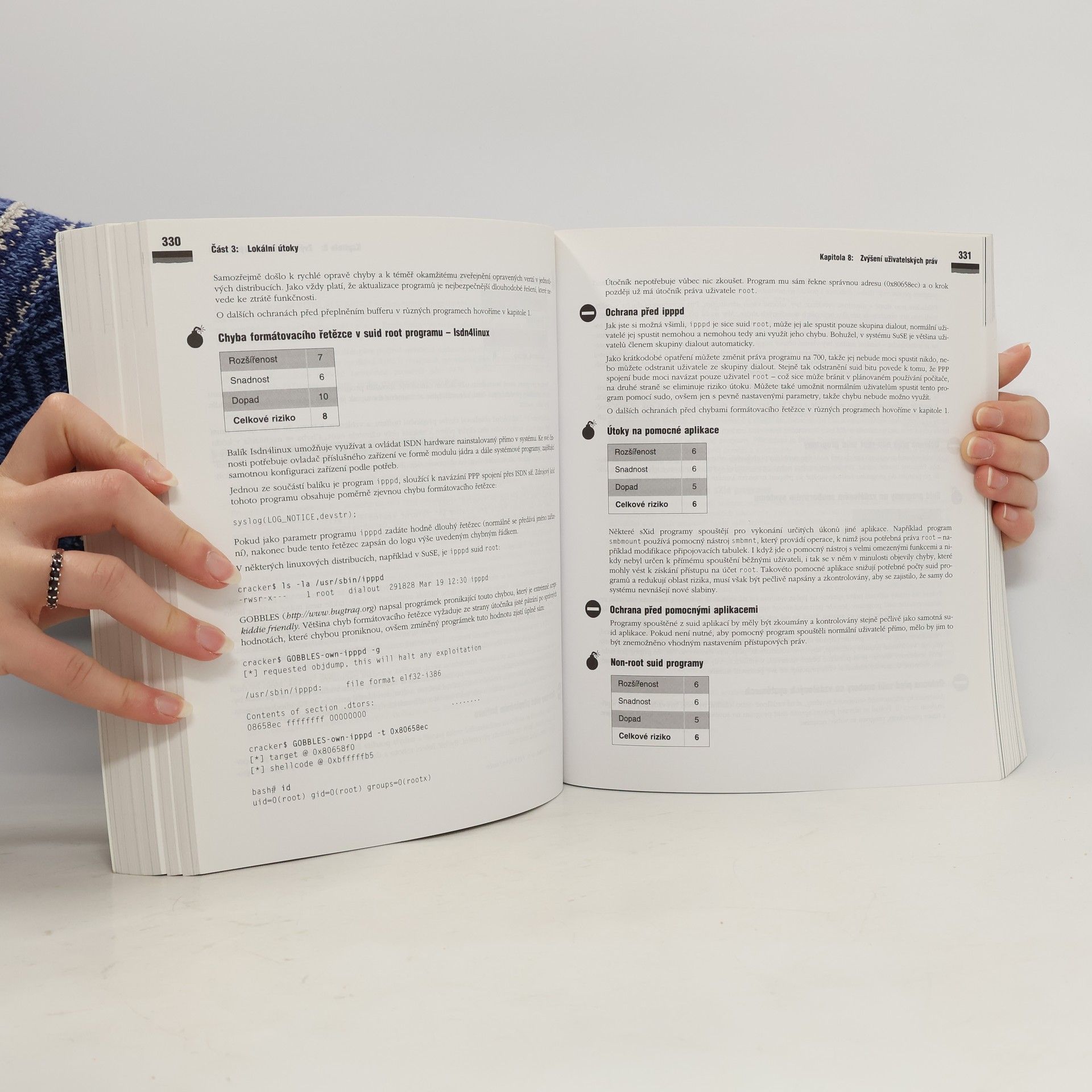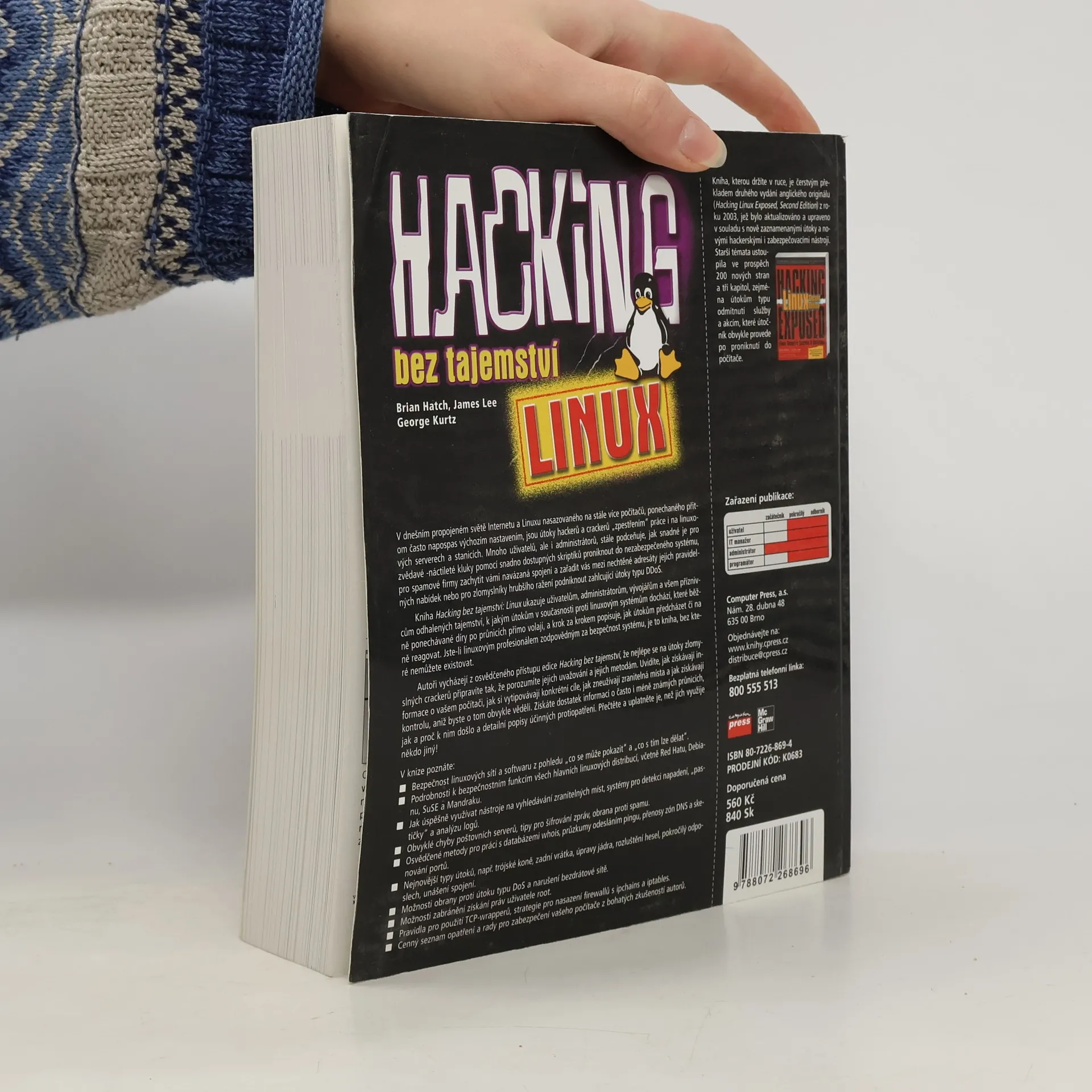 Kniha má zhruba 620 stran popsaných zajímavým textem které vás provedou tématy jako mapování počítače a sítě, sociální inženýrství, trojské koně, fyzické ůtoky, útoky přes síť, zvýšení uživatelksých práv, webové servery, dynamický obsah, firewally, řízení přístupu, útoky DoS, maskování, backdoor (zadní vrátka), odhalení útoku a obnova systému, rozbory a bezpečnostní audit. V knihe je lehce nastíněna i historie GNU Linux a komunity. Pokud nemáte k dispozici žádne informace kniha je dobrým ůvodem který popisuje nejpouživanější a nejznamější techniky které existují ve svetě Linuxu. V knize nehledejte manuály na to jak hackovat.