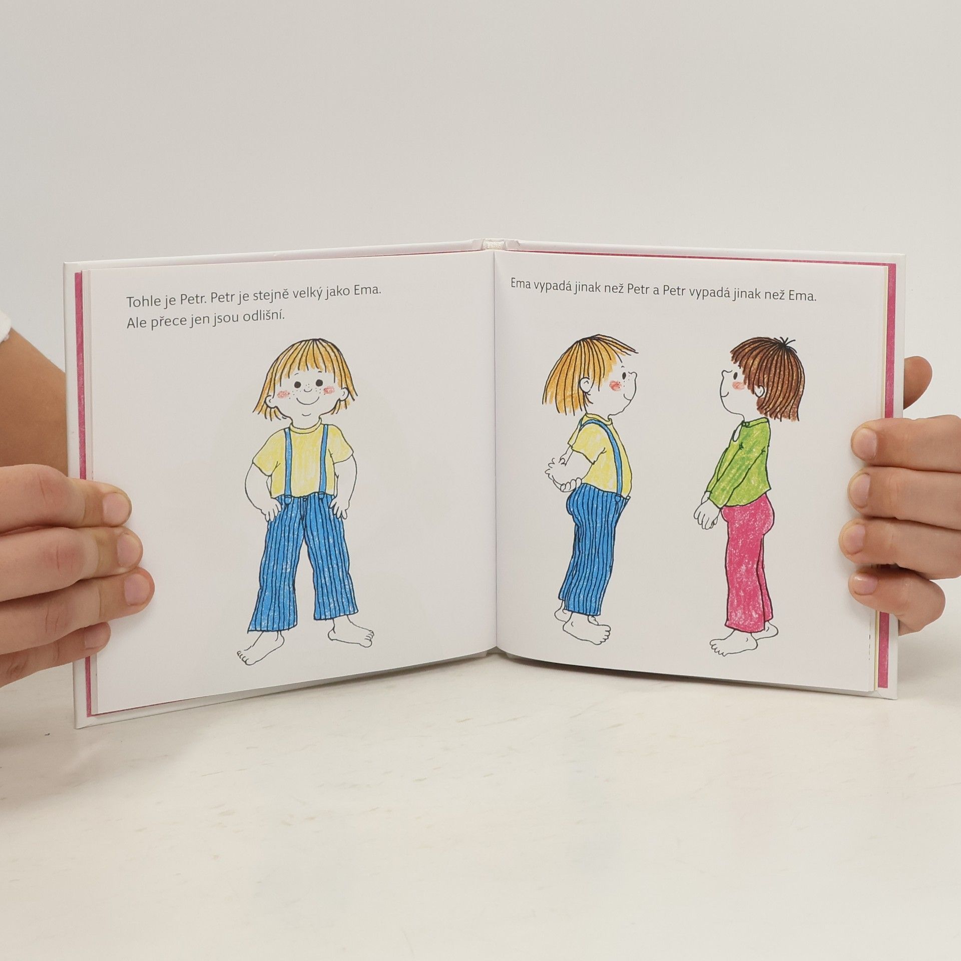 V knížce najdete jsou dva krátké příběhy. V prvním příběhu dostane bratříčka. Bratříček jí, kaká, křičí a spí. Ema má bratříčka moc ráda, ale občas by ho s chutí vyměnila za nějakou tetu! Druhé vyprávění je o Emě a jejím kamarádu Petrovi. Jak je možné, že je u každého skoro všechno jinak? Jiné je to u nich doma, mají různé rodiny, i každý vypadá jinak. Je to ale zábava, zjišťovat, co je tak odlišuje! Nakonec, kdyby vše bylo pořád stejné, byla by to nuda. Knížka s poučením pro děti od 4 let.