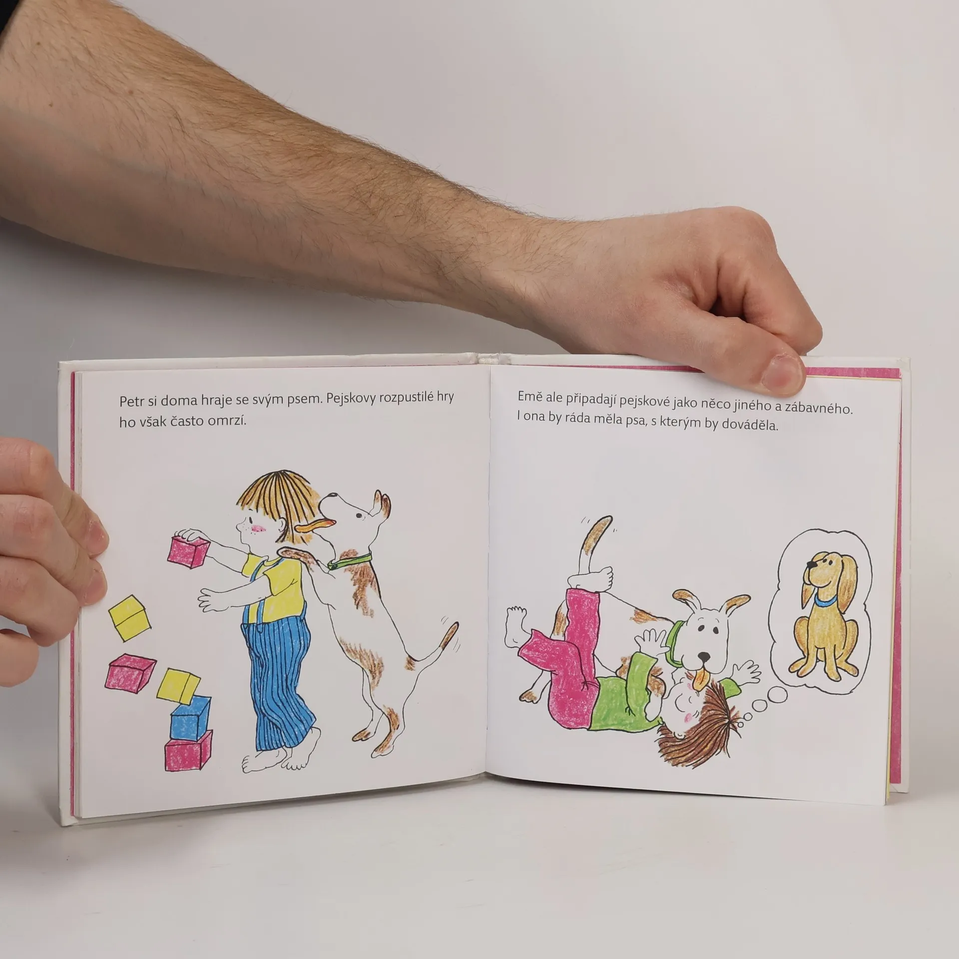 V knížce najdete jsou dva krátké příběhy. V prvním příběhu dostane bratříčka. Bratříček jí, kaká, křičí a spí. Ema má bratříčka moc ráda, ale občas by ho s chutí vyměnila za nějakou tetu! Druhé vyprávění je o Emě a jejím kamarádu Petrovi. Jak je možné, že je u každého skoro všechno jinak? Jiné je to u nich doma, mají různé rodiny, i každý vypadá jinak. Je to ale zábava, zjišťovat, co je tak odlišuje! Nakonec, kdyby vše bylo pořád stejné, byla by to nuda. Knížka s poučením pro děti od 4 let.