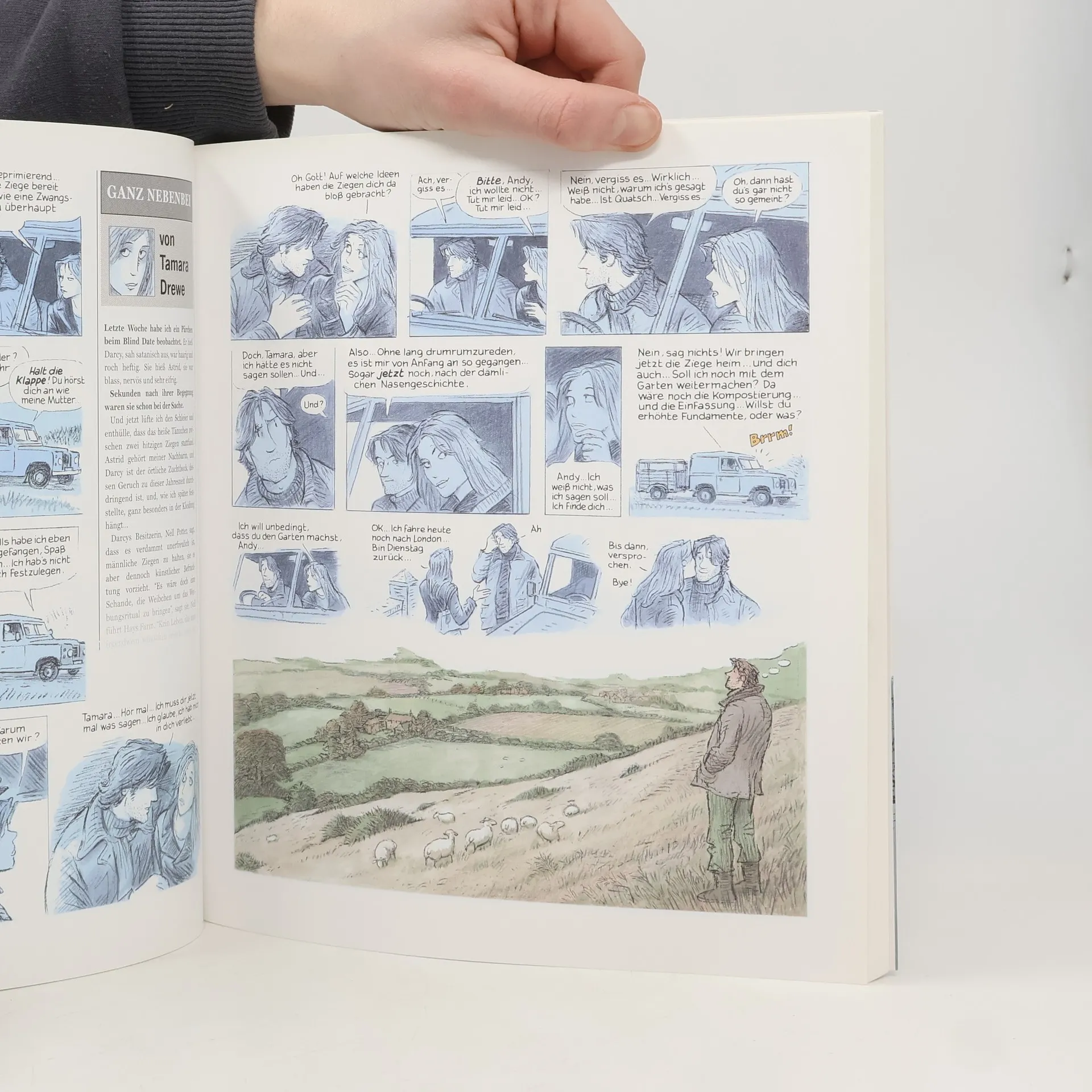 Ein großzügiges Anwesen im Süden Englands. Schriftsteller ziehen sich hierhin zurück, um in Abgeschiedenheit an ihren Manuskripten zu arbeiten. Die Idylle wird gestört, als Tamara Drewe, Klatschkolumnistin aus London, an diesen Ort ihrer Jugend zurückkehrt, um ihr Erbe anzutreten. Mit ihrer Anziehungskraft auf die Männer vor Ort bringt Tamara lang unterdrückte Konflikte zum Ausbruch. Als zwei pubertierende Mädchen aus dem Dorf das allgemeine emotionale Durcheinander zum Anlass für eine Intrige nehmen, kommt es zu einem Todesfall… Inspiriert von Thomas Hardys „Am grünen Rand der Welt“ setzt sich Posy Simmonds humorvoll und mit feinem Gespür für Charaktere mit der englischen Mittelklasse auseinander. Fast beiläufig legt sie in ihren klaren Zeichnungen die Schwächen ihrer Figuren offen und entwirft ein Tableau eitler Künstlerexistenzen, die sie ebenso treffend und unterhaltsam in Szene zu setzen weiß wie die Vielschichtigkeit ihrer Protagonistin.