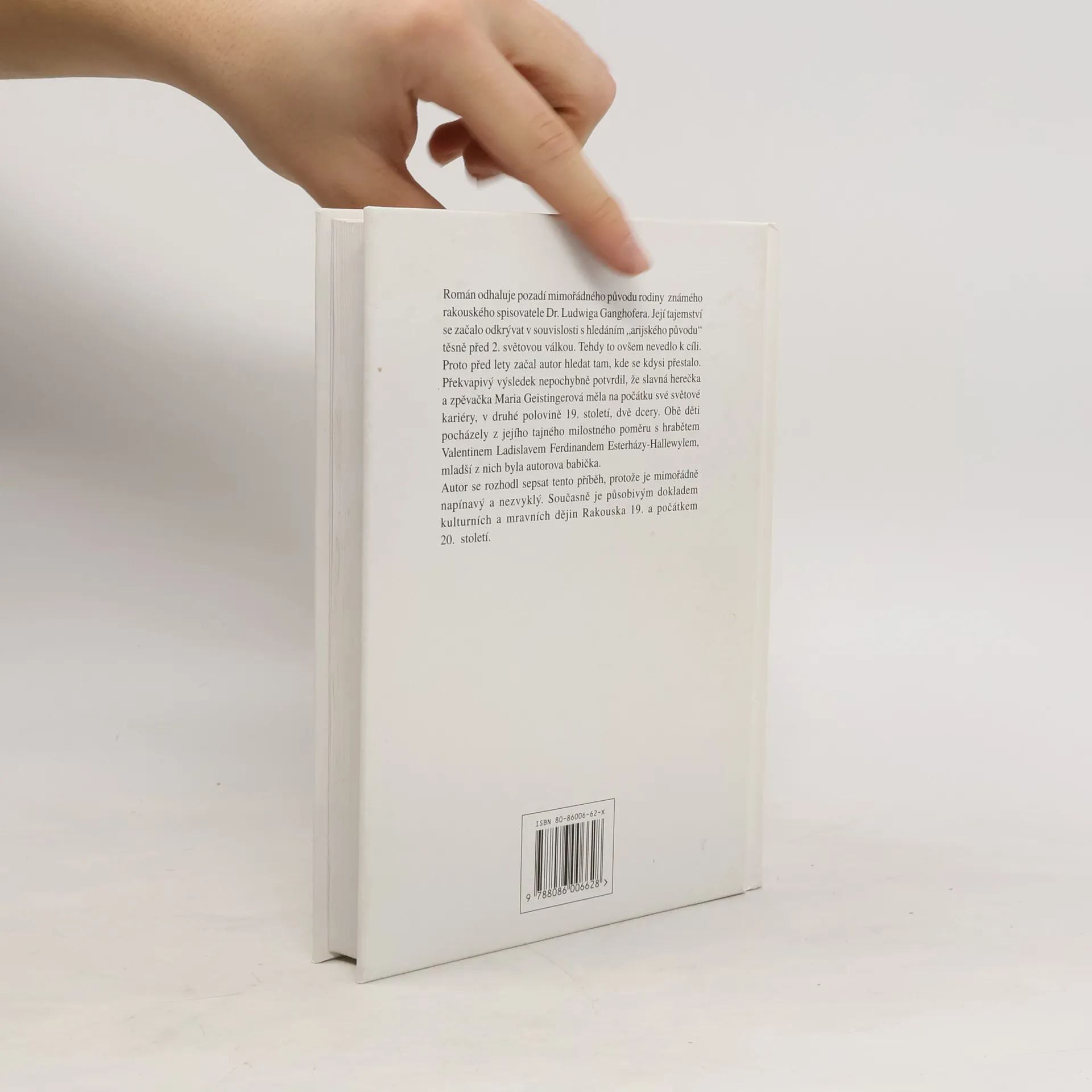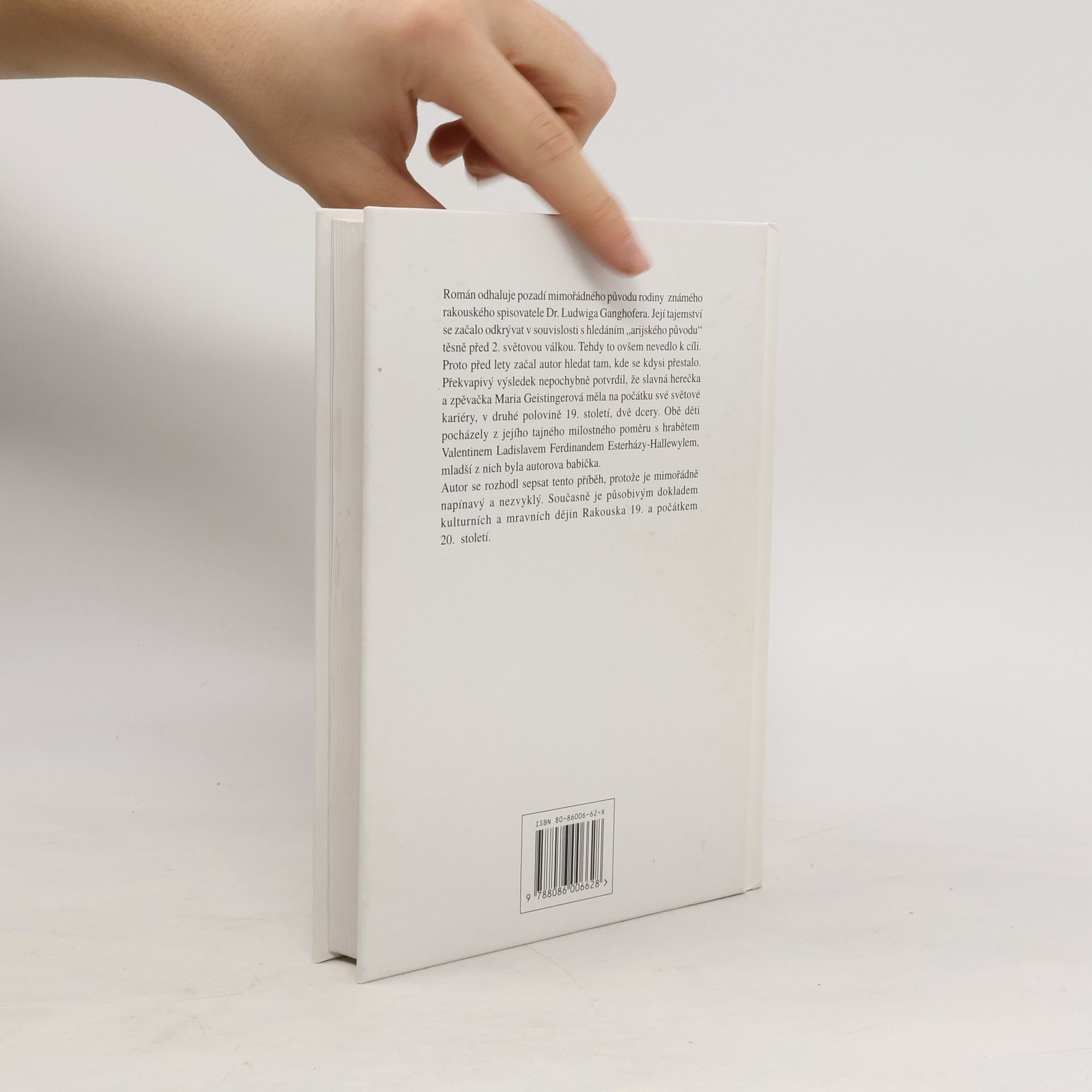 Čtivý román o pátrání po původu autorovy babičky, ženy lidového spisovatele Ludwida Ganghofera, které rodina zahájila v souvislosti s "árijským průkazem původu". Intensivní pátrání po zjištění identity vedlo k překvapivému zjištění, že babička byla dcera slavné herečky 2. poloviny 19.století. Kniha je působivým dokladem kulturních a mravních dějin Rakouska.