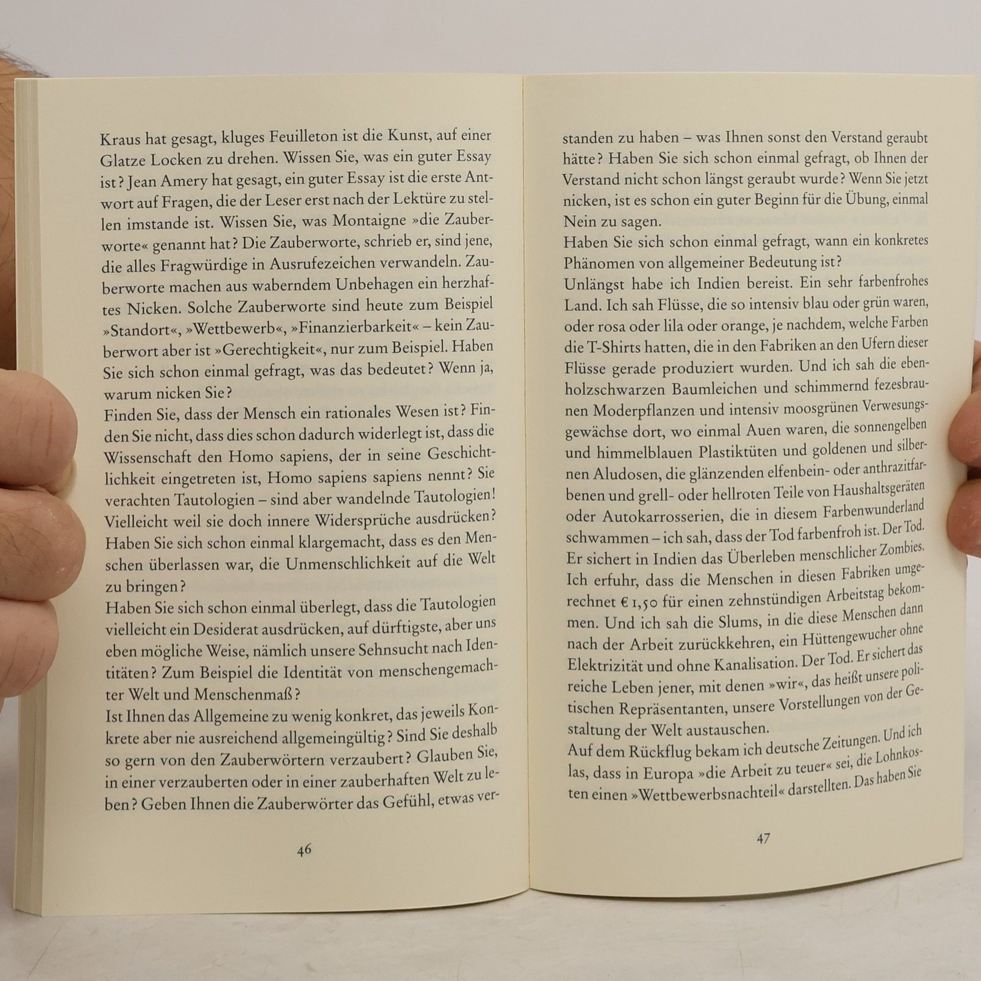 … es kommt darauf an, sie wieder zu interpretieren! Wie kann man die Realität begreifen, wenn schon ihre Begriffe nicht mehr begriffen werden? Das Eigentümliche an großen Begriffen wie „Demokratie“, „Arbeit“, „Religion“, „Kultur“ oder „Europa“ ist, daß sie einer permanenten Banalisierung unterworfen sind: sie wurden zu bloßen Worten, die jeder im Munde führt, die aber nichts mehr bedeuten. Robert Menasse unternimmt dagegen eine permanente Revolution der Begriffe und zeigt: die Welt steht auf dem Kopf, wenn wir die Begriffe wieder auf die Füße stellen. Die Begriffe haben Recht – wir wissen es nicht, aber wir verwenden sie…