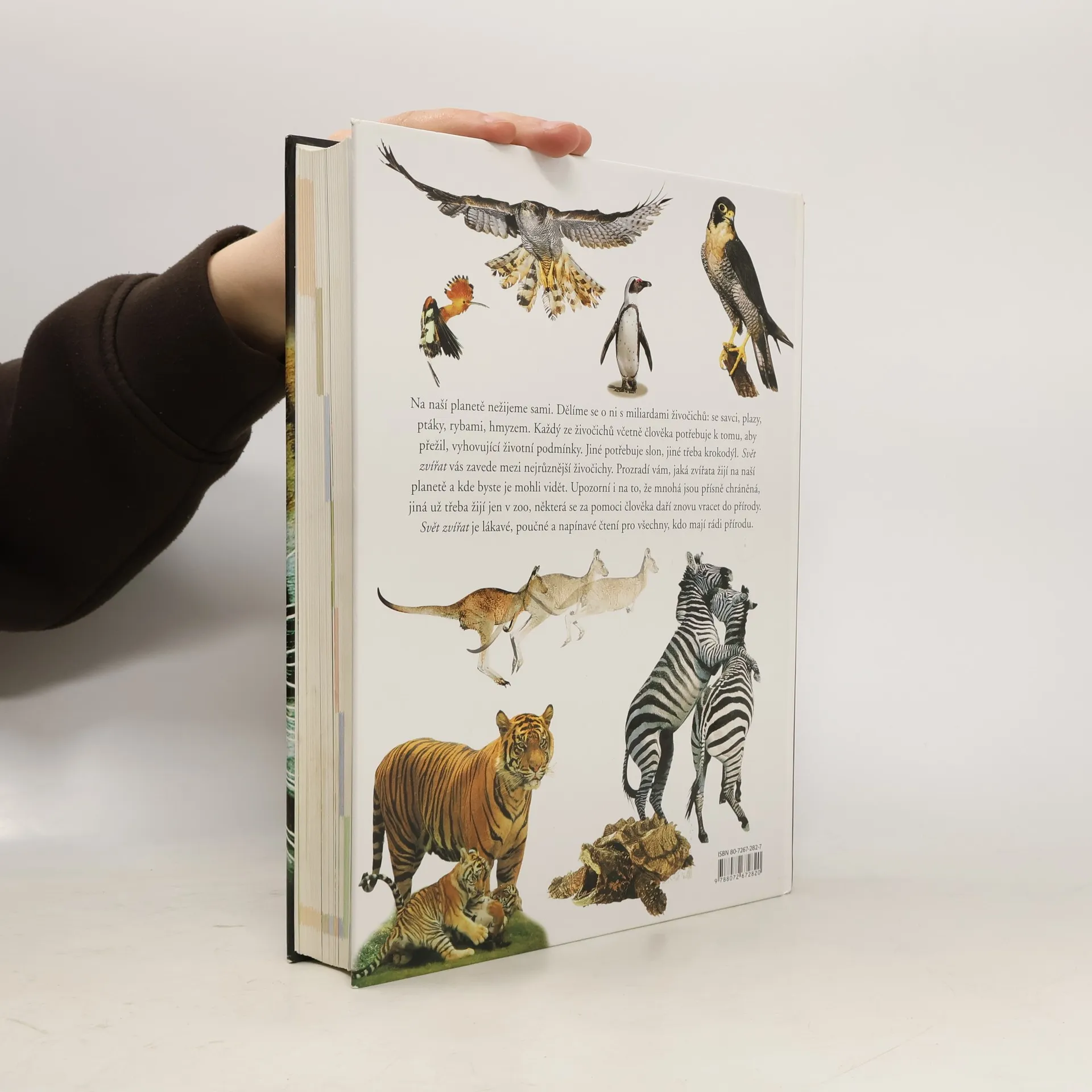 Na naší planetě nežijeme sami. Dělíme se o ni s miliardami živočichů: se savci, plazy, ptáky, rybami, hmyzem. Každý ze živočichů včetně člověka potřebuje k tomu, aby přežil, vyhovující životní podmínky. Jiné potřebuje slon, jiné třeba krokodýl. Svět zvířat vás zavede mezi nejrůznější živočichy. Prozradí vám, jaká zvířata žijí na naší planetě a kde byste je mohli vidět. Upozorní i na to, že mnohá jsou přísně chráněná, jiná už třeba žijí jen v zoo, některá se za pomoci člověka daří znovu vracet do přírody. Svět zvířat je lákavé, poučné a napínavé čtení pro všechny, kdo mají rádi přírodu. - Kniha nabízí široce pojatý přehled živočichů od bezobratlých až po savce. - Více něž 700 pozoruhodných barevných fotografií. - Souhrn známých i nevšedních poznatků ze světa zvířat.