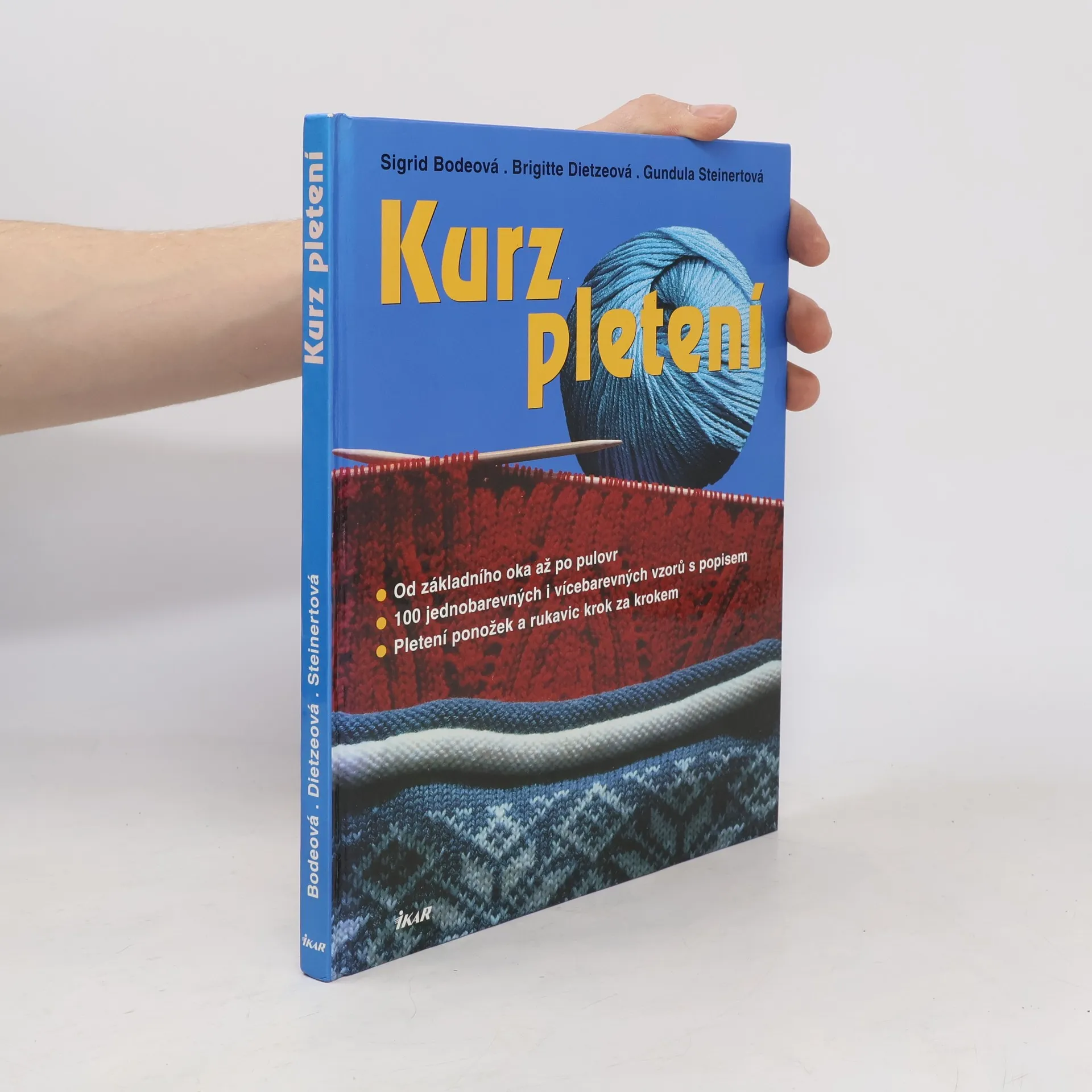 Od základního oka až po pulovr: 100 jednobarevných i vícebarevných vzorů s popisem. Příručka určená začínajícím pletařkám, vhodná i pro výuku ručních prací v základní škole. Od přehledu základních potřeb a pomůcek přes různé techniky pletení až po jednoduché i složitější vzory a modely. Závěrečná kapitola podrobně popisuje postupy při pletení ponožek a rukavic. Veškeré popisy jsou doprovázeny nákresy a fotografiemi.