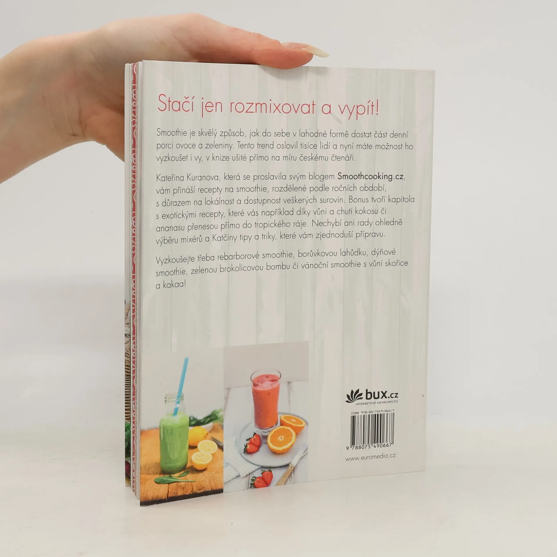 Kniha známé české foodblogerky Kateřiny Kuranovy z blogu Smoothcooking.cz ukazuje, jak si jednoduše připravit smoothie se sezónních, snadno dostupných a lokálních surovin. Recepty jsou rozdělené podle ročních období a nechybí ani osvědčené rady a tipy. České smoothie je kuchařka pro každý den, plná energie, inspirace a pohody.