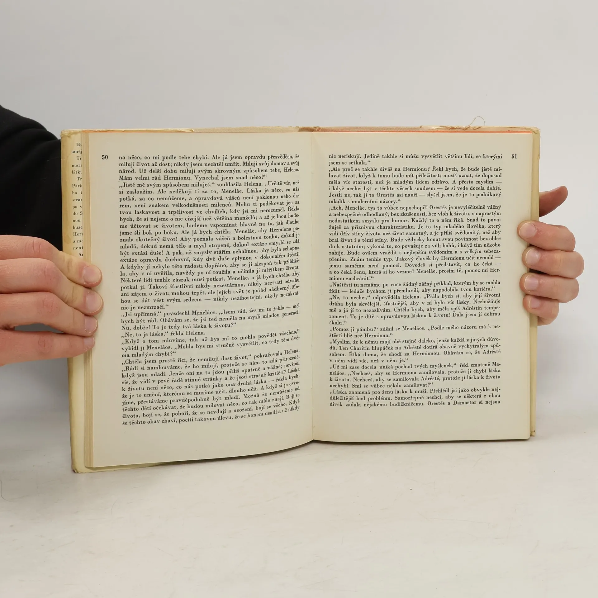 Humor je vzácné koření a autoři, kteří ho umějí rozdávat, by měli patřit k nejváženějším. Tím odvážnější je pak záměr vystavět humorný příběh na skrumáži vražd, které poskytly látku k celé řadě proslulých řeckých tragédií. Trojská válka vypukla, jak známo, protože Paris unesl do Tróje Helenu, manželku spartského krále Meneláa. Zuřila deset let, na obou stranách padlo mnoho hrdinů, a když bylo po všem, Meneláos si svou ženu odvezl zpátky do Sparty a začali dávat dohromady porouchanou domácnost. Nebylo to lehké, neboť v příbuzenstvu se neustále vraždilo, dceruška Hermiona se rodičům poněkud vymkla z ruky a mezi Helenou a Meneláem to neklapalo – což není koneckonců divu. Americký spisovatel John Erskine nehodlal znovu, už po tolikáté, interpretovat tento neblahý úsek řeckých dějin. Šlo mu spíš o to, postavit proti sobě dvě životní filozofie. Jedna – reprezentovaná bezradným a vždy znovu trapným Meneláem – se pokouší vtěsnat život do zkostnatělých konvencí, druhá – Helenina – je naplněna láskou k životu. Dvě neslučitelné koncepce, kdysi stejně jako dnes. A zároveň dva báječné prototypy, mužský a ženský. Knížka plná jemné ironie, duchaplných dialogů, bystrých filozofických postřehů. Nepatetická oslava života a lásky.