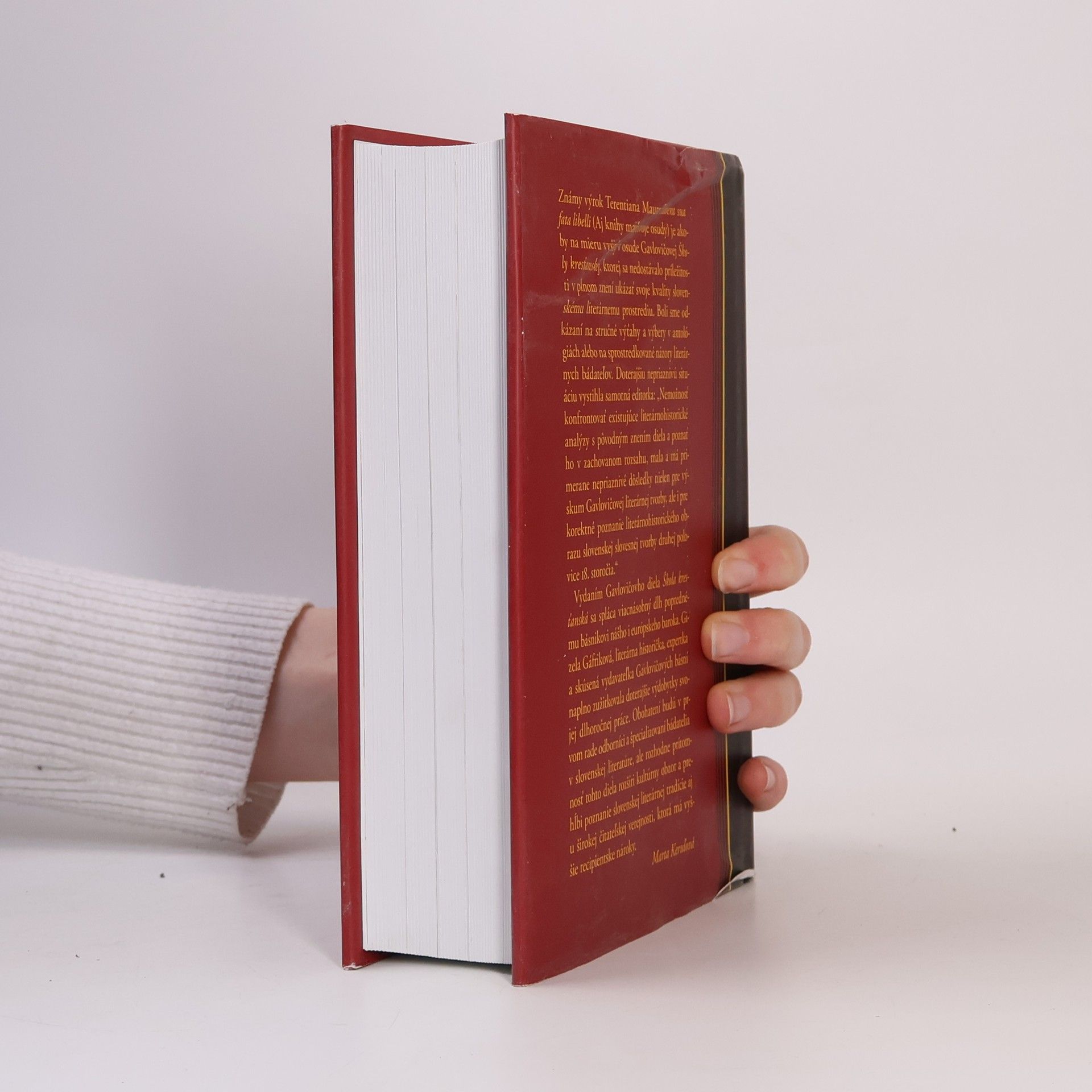 Editor: Gizela Gáfriková. Známy výrok Terentiana Maura Habent sua fata libelli (Aj knihy majú svoje osudy) je akoby na mieru vyšitý v osude Gavlovičovej Školy kresťanskej, ktorej sa nedostávalo príležitosti v plnom znení ukázať svoje kvality slovenskému literárnemu prostrediu. Boli sme odkázaní na stručné výťahy a výbery v antológiách alebo na sprostredkované názory literárnych bádateľov. Doterajšiu nepriaznivú situáciu vystihla samotná editorka : „Nemožnosť konfrontovať existujúce literárnohistorické analýzy s pôvodným znením diela a poznať ho v zachovanom rozsahu, mala a má primerane nepriaznivé dôsledky nielen pre výskum Gavlovičovej literárnej tvorby, ale i pre korektné poznanie literárnohistorického obrazu slovenskej slovesnej tvorby druhej polovice 18. storočia.“ Vydaním Gavlovičovho diela Škola kresťanská sa spláca viacnásobný dlh poprednému básnikovi nášho i európskeho baroka. Gizela Gáfriková, literárna historička, expertka a skúsená vydavateľka Gavlovičových básní naplno zužitkovala doterajšie výdobytky svojej dlhoročnej práce. Obohatení budú v prvom rade odborníci a špecializovaní bádatelia v slovenskej literatúre, ale rozhodne prítomnosť tohto diela rozšíri kultúrny obzor a prehĺbi poznanie slovenskej literárnej tradície aj u širokej čitateľskej verejnosti, ktorá má vyššie recipientske nároky.