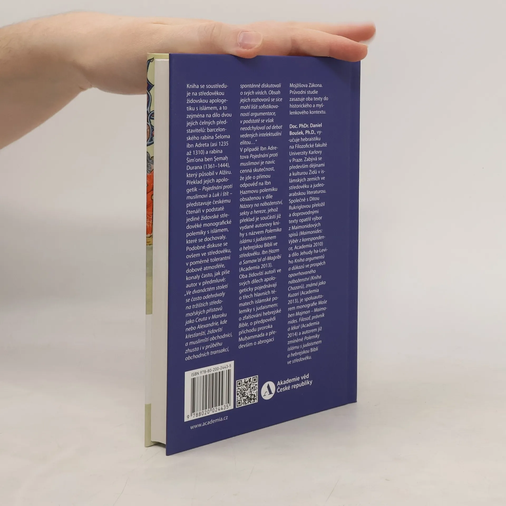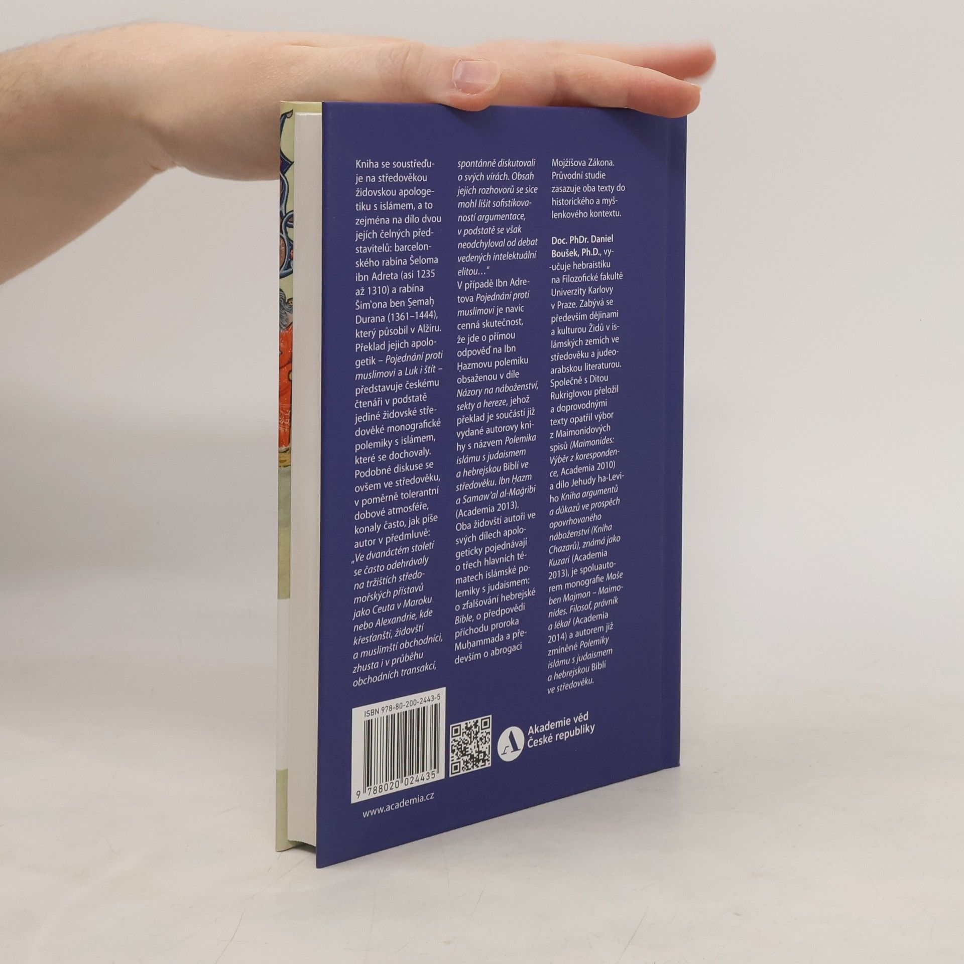 Kniha se soustřeďuje na středověkou židovskou apologetiku s islámem, a to zejména na dílo dvou jejích čelných představitelů: barcelonského rabína Šelomo ibn Adreta (cca 1235 – 1310) a rabína Šimona ben Cemach Durana (1361–1444), který působil v Alžíru. Překlad jejich apologetik – Pojednání proti muslimovi a Luk i štít – představuje českému čtenáři v podstatě jediné židovské středověké monografické polemiky s islámem, které se dochovaly. V případě Ibn Adretova Pojednání proti muslimovi je navíc cenná skutečnost, že jde o přímou odpověď na Ibn Hazmovu polemiku obsaženou v díle Názory na náboženství, sekty a hereze, jehož překlad je součástí již vydané autorovy knihy s názvem Polemika islámu s judaismem a hebrejskou Biblí ve středověku. Ibn ?azm a Samaw?al al-Magribi (Academia 2013). Oba židovští autoři ve svých dílech apologeticky pojednávají o třech hlavních tématech islámské polemiky s judaismem: o zfalšování hebrejské Bible, o předpovědi příchodu proroka Mu?ammada a především o abrogaci Mojžíšova Zákona. Průvodní studie zasazuje oba texty do historického a myšlenkového kontextu.