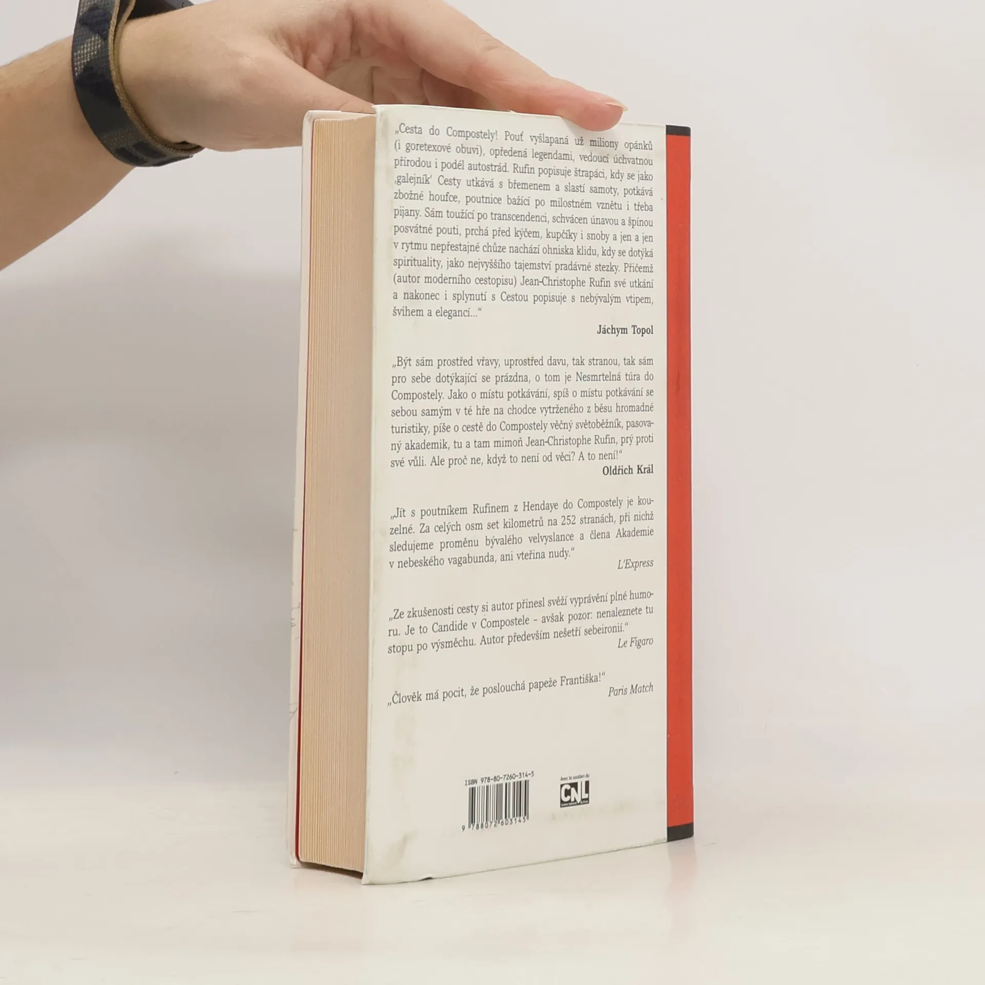 Cesta do Compostely! Pouť vyšlapaná už milióny opánků (i goretexové obuvi), opředená legendami, vedoucí úchvatnou přírodou i podél autostrád. Rufin popisuje štrapáci, kdy se jako „galejník“ Cesty utkává s břemenem a slastí samoty, potkává zbožné houfce, poutnice bažící po milostném vznětu i třeba pijany. Sám toužící po transcedenci, schvácen únavou a špínou posvátné pouti, prchá před kýčem, (kupčíky) i snoby a jen a jen v rytmu nepřestajné chůze nachází ohniska klidu, kdy se dotýká spirituality, jako nejvyššího tajemství pradávné stezky. Přičemž (autor moderního cestopisu) Jean Christophe Rufin své utkání a nakonec i splynutí s Cestou popisuje s nebývalým vtipem, švihem a elegancí …
