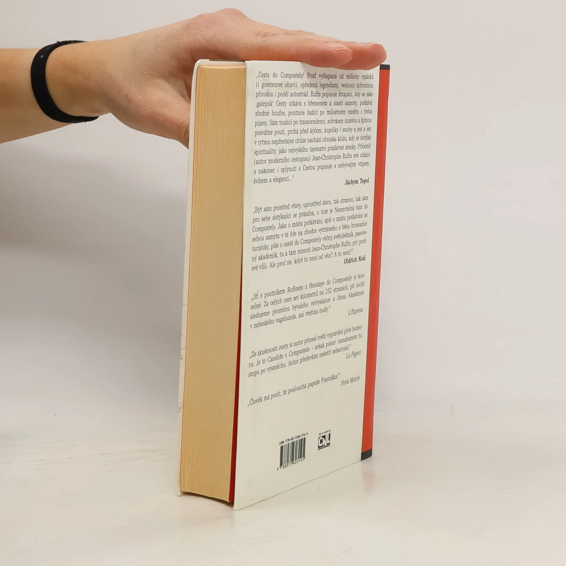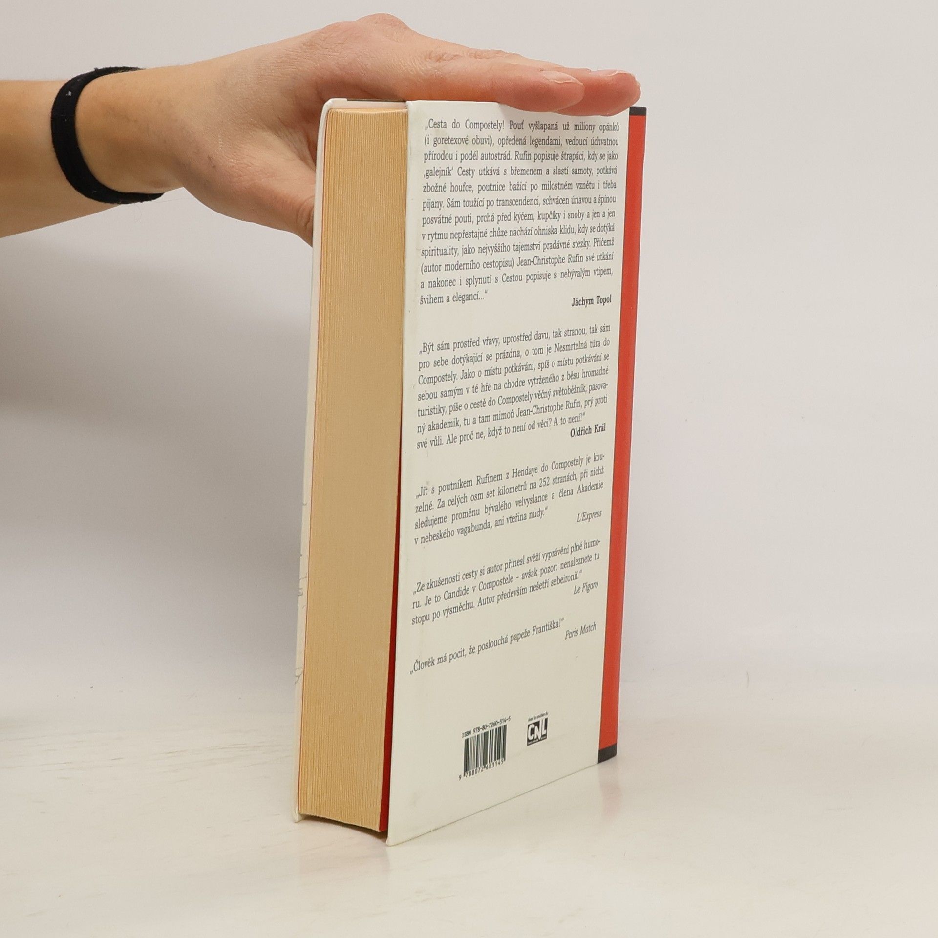Cesta do Compostely! Pouť vyšlapaná už milióny opánků (i goretexové obuvi), opředená legendami, vedoucí úchvatnou přírodou i podél autostrád. Rufin popisuje štrapáci, kdy se jako „galejník“ Cesty utkává s břemenem a slastí samoty, potkává zbožné houfce, poutnice bažící po milostném vznětu i třeba pijany. Sám toužící po transcedenci, schvácen únavou a špínou posvátné pouti, prchá před kýčem, (kupčíky) i snoby a jen a jen v rytmu nepřestajné chůze nachází ohniska klidu, kdy se dotýká spirituality, jako nejvyššího tajemství pradávné stezky. Přičemž (autor moderního cestopisu) Jean Christophe Rufin své utkání a nakonec i splynutí s Cestou popisuje s nebývalým vtipem, švihem a elegancí …