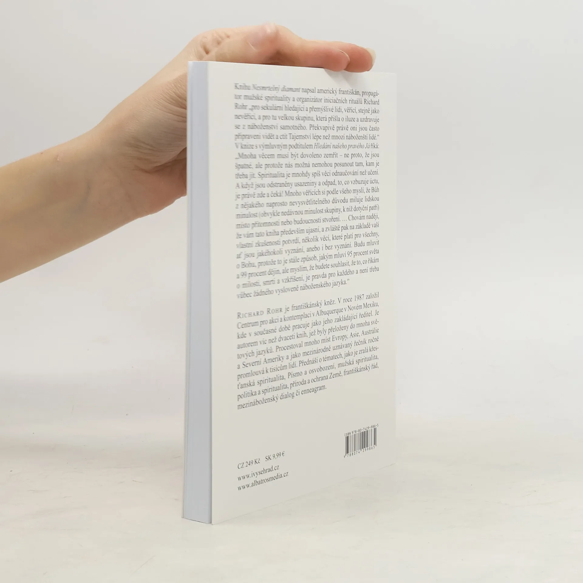 Knihu Nesmrtelný diamant napsal americký františkán, propagátor mužské spirituality a organizátor iniciačních rituálů Richard Rohr „pro sekulární hledající a přemýšlivé lidi, věřící, stejně jako nevěřící, a pro tu velkou skupinu, která přišla o iluze a uzdravuje se z náboženství samotného. Překvapivě právě oni jsou často připraveni vidět a ctít Tajemství lépe než mnozí náboženští lidé. „… Mnoha věcem musí být dovoleno zemřít – ne proto, že jsou špatné, ale protože nás možná nemohou posunout tam, kam je třeba jít. Spiritualita je mnohdy spíš věcí odnaučování než učení. A když jsou odstraněny usazeniny a odpad, to, co vzbuzuje úctu, je právě zde a čeká! Mnoho věřících si podle všeho myslí, že Bůh z nějakého naprosto nevysvětlitelného důvodu miluje lidskou minulost (obvykle nedávnou minulost skupiny, do níž patří) místo přítomnosti nebo budoucnosti stvoření. … Chovám naději, že tato kniha vám především pomůže ujasnit, a zejména z vaší vlastní zkušenosti potvrdit několik věcí, které jsou pravdivé pro lidi jakéhokoliv náboženství i bez jakéhokoliv náboženství. Budu používat Boží jazyk, protože je to stále řeč 95 procent světa a 99 procent historie, ale myslím, že budete souhlasit, že to, co říkám o milosti, smrti a vzkříšení, je pravdou pro každého a nepotřebuje vůbec žádný vysloveně náboženský jazyk.“