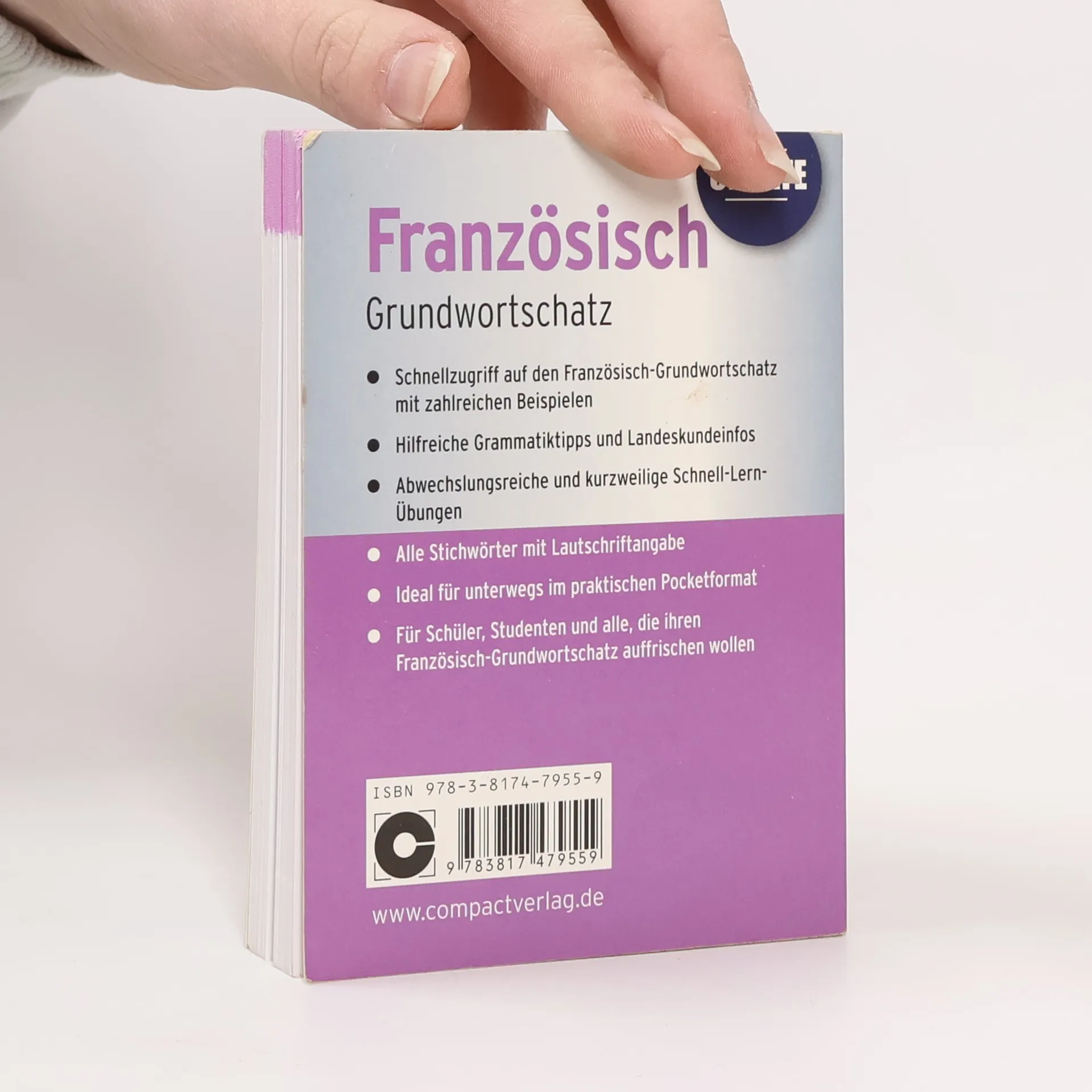 Das kompakte Nachschlagewerk im praktischen Pocket-Format bietet einen schnellen Zugriff auf die wichtigsten Wörter der französischen Sprache. Die Lautschriftangaben helfen dem Lernenden bei der korrekten Aussprache. Zahlreiche Beispiele verdeutlichen die Verwendungsmöglichkeiten und machen den Wortschatz leichter einprägsam. Durch kleine Schnell-Lern-Übungen nach jedem Kapitel lässt sich das Gelernte sofort anwenden und trainieren. - Schnellzugriff auf den französischen Grundwortschatz mit zahlreichen Beispielen - hilfreiche Grammatiktipps und Landeskundeinfos - abwechslungsreiche und kurzweilige Schnell-Lern-Übungen - alle Stichwörter mit Lautschriftangabe - ideal für unterwegs im praktischen Pocket-Format - für Schüler, Studierende, Selbst- und VHS-Lerner