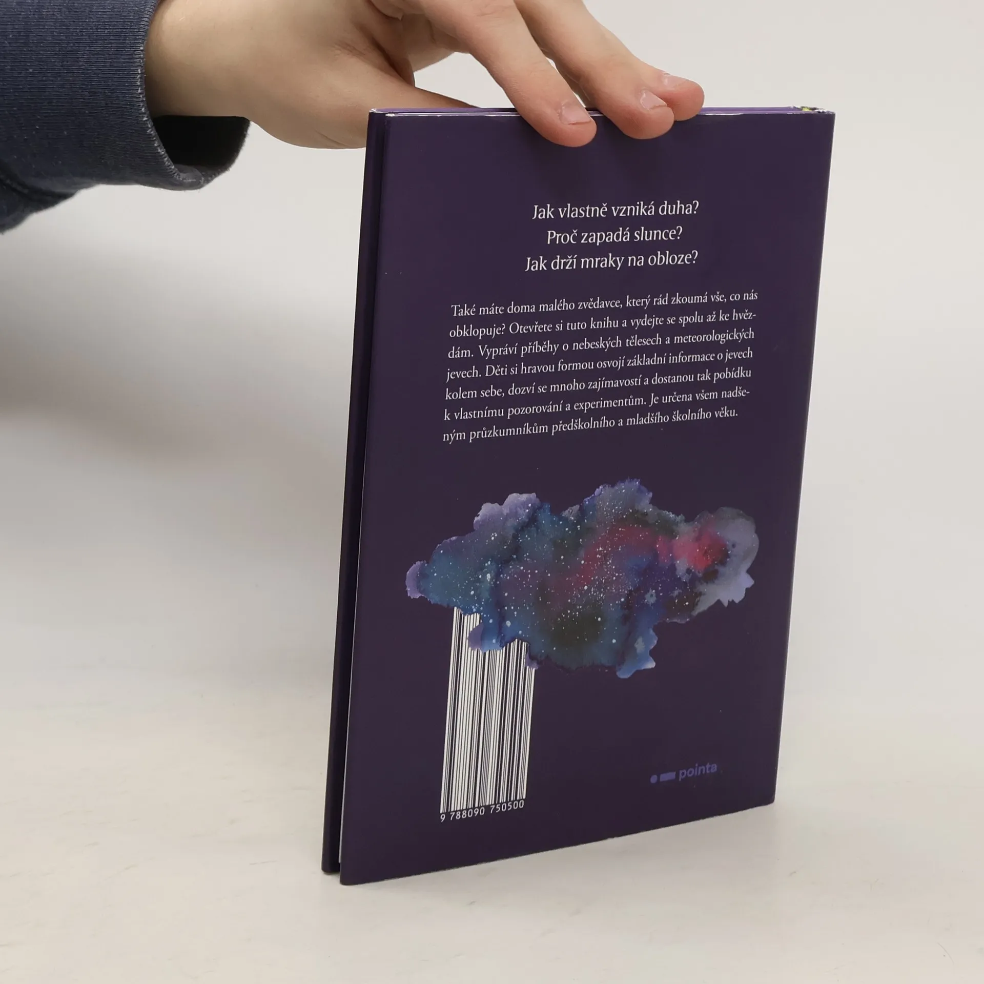 Jak vlastně vzniká duha? Proč zapadá slunce? Jak drží mraky na obloze? ... Také máte doma malého zvědavce, který rád zkoumá vše, co nás obklopuje? Otevřete knihu a vydejte se spolu až ke hvězdám. Kniha vypráví příběhy o nebeských tělesech a meteorologických jevech. Děti si hravou formou osvojí základní informace o jevech kolem sebe, zjistí mnoho zajímavostí a dostanou pobídku k vlastnímu pozorovaní a experimentům. Je určena všem nadšeným průzkumníkům předškolního i mladšího školního věku.