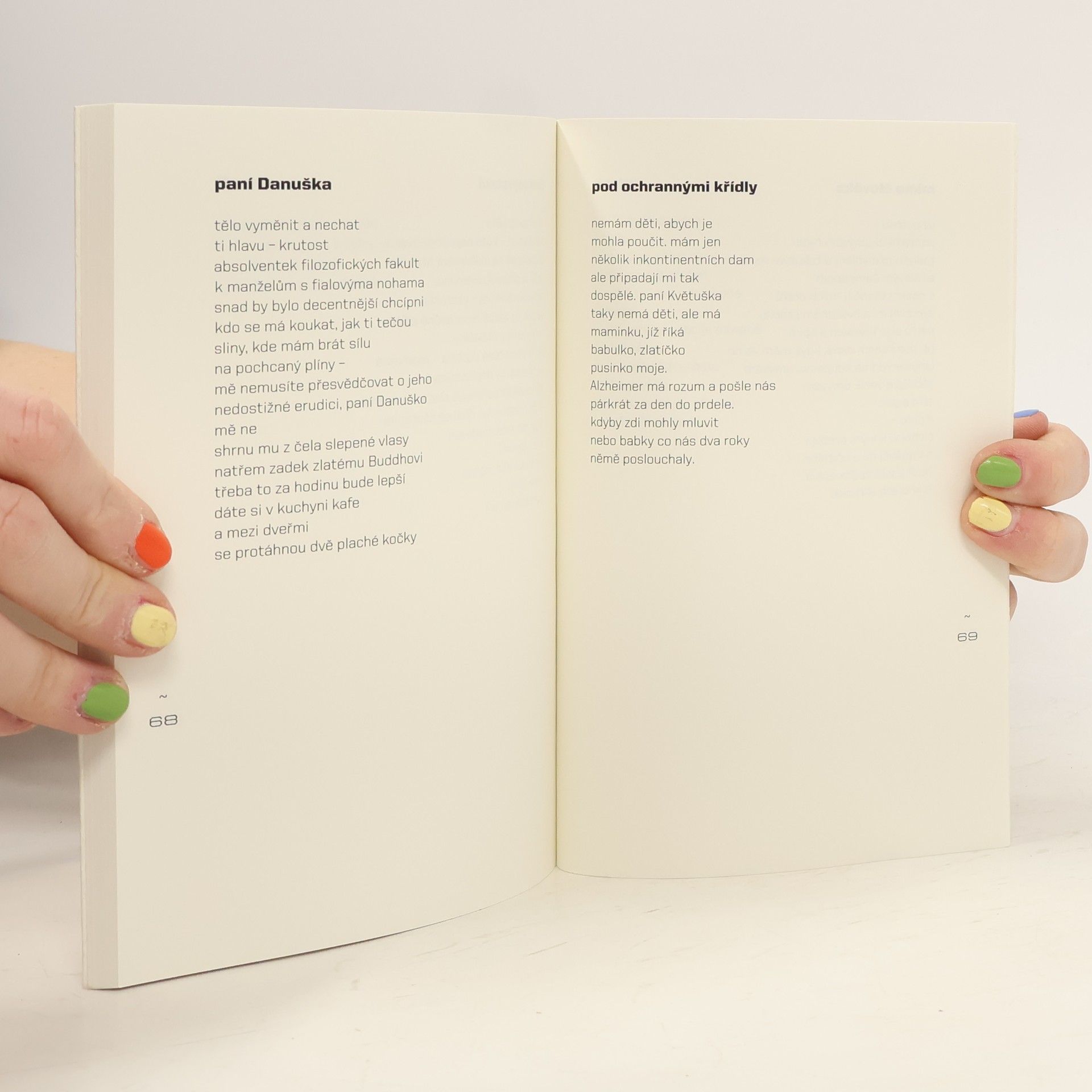 Krvácí do sebe, blaze, tiše... rozpaky z dětství, z matky; pak klášter kdesi v Jižní Koreji, Buddha jak pomeranč vyhozený za sebe (kdo ho chytne?); pak péče o kluka bez svalů - Zuzana Gabrišová krvácí svou poezii a krvácí svou poezií. V téhle korektní současnosti, v níž se bojuje za všechno (ale samozřejmě při zachování všech "výdobytků") vyprazdňováním, mučením slov, prochází kolem básnířka s úplně jinou českou slovesností. V pěti částech sbírky, pokud by se slily všechny básně do jednoho textu, čteme příběh o tom, jak plevely budoucích výčitek pevně zakořenily... Jednou za čas se dostane do zemské atmosféry meteorit a spadne na území České republiky. Se sbírkou Ráno druhého dne Zuzany Gabrišové je to podobné...
