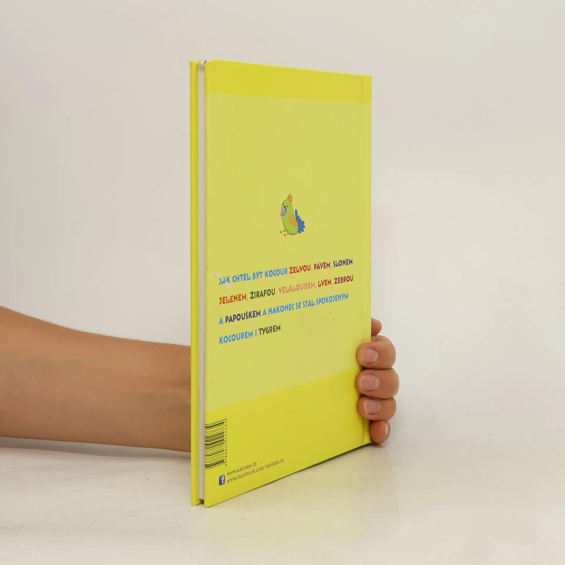 Jak chtěl být kocour želvou, pávem, slonem, jelenem, žirafou, velbloudem, lvem, zebrou a papouškem a nakonec se stal spokojeným kocourem i tygrem.