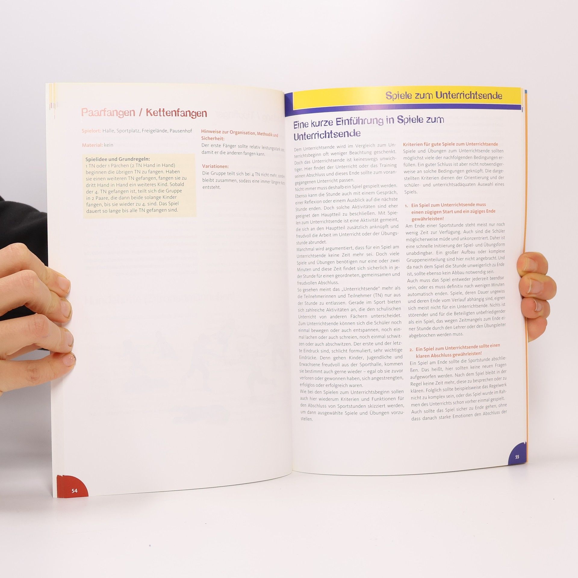 Der Aufbau einer Unterrichtsstunde im Sport, und demnach auch Unterrichtsbeginn und -ende, folgt immer einem bestimmten Ziel, das dann auch bestimmte Unterrichtsinhalte erfordert. Herkömmliche Spielebücher unterscheiden nicht nach dem Zeitpunkt des Einsatzes der Spiele bzw. stellen die Spiele in den Mittelpunkt der Stunde. Hier füllt dieses Praxisbuch eine Lücke, indem es Spiele vorstellt, die sich explizit für den Beginn bzw. für das Ende einer Sportstunde eignen.