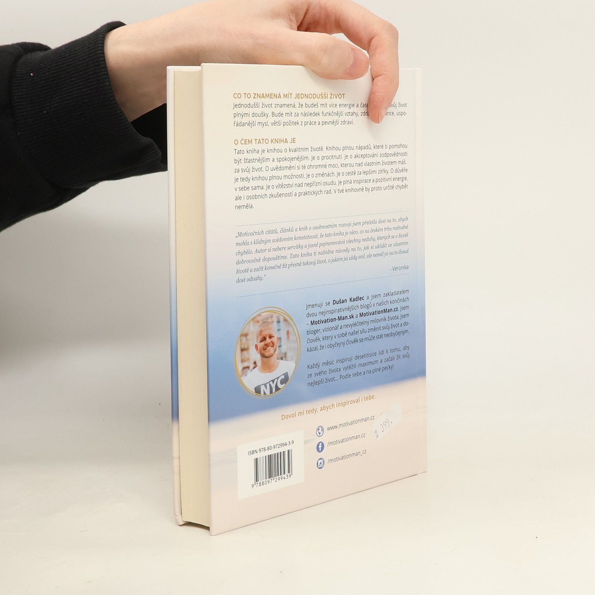Tato kniha, oceněná titulem Kniha roka 2017 v kategorii Životní styl, je o kvalitním životě a nabízí nápady, jak dosáhnout štěstí a spokojenosti. Zaměřuje se na procitnutí a přijetí odpovědnosti za svůj život, přičemž zdůrazňuje moc, kterou máme nad svým osudem. Obsahuje 100 způsobů, jak si komplikujeme život každodenními rozhodnutími, ale nenabízí kritiku; naopak, poskytuje vysvětlení a praktické rady pro zlepšení situace. Kniha je psána jednoduše a poutavě, takže čtení je příjemné. Nabízí funkčnější vztahy tím, že ukazuje, jak se vyhnout dramatu a jak budovat kvalitní a upřímné vztahy. Dále se zaměřuje na zdraví, připomíná základní pilíře a jak o ně pečovat. Pomůže ti uspořádat život a uvědomit si, co je skutečně důležité. Kniha také posiluje uvědomělou mysl a ukazuje, jaké myšlenky vítat a kterých se zbavit. Zdravější finance jsou dalším tématem, přičemž nabízí principy, které ti pomohou dostat se do pozitivního finančního stavu. Nakonec se zaměřuje na práci, kterou si zamiluješ, a poskytuje informace, které tě nasměrují k naplnění v profesním životě.
