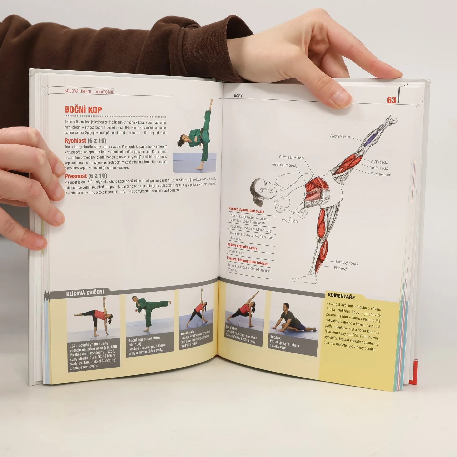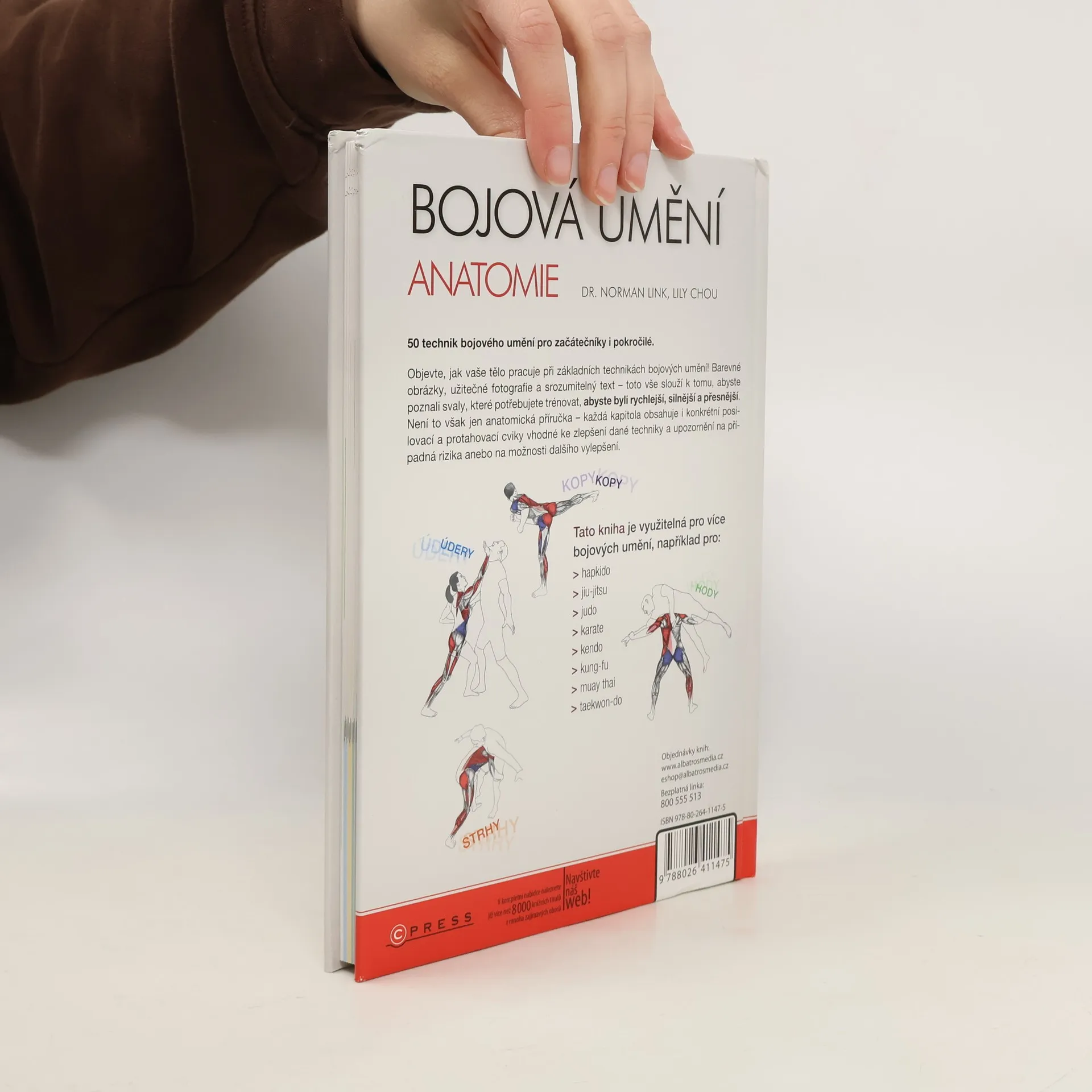 Ilustrovaný průvodce zapojením svalů v základních kopech, úderech a strzích Objevte, jak vaše tělo pracuje při základních technikách bojových umění! Barevné obrázky, užitečné fotografie a srozumitelný text – toto vše slouží k tomu, abyste poznali svaly, které potřebujete trénovat, abyste byli rychlejší, silnější a přesnější. Není to však jen anatomická příručka – každá kapitola obsahuje i konkrétní posilovací a protahovací cviky vhodné ke zlepšení dané techniky a upozornění na případná rizika anebo na možnosti dalšího vylepšení.