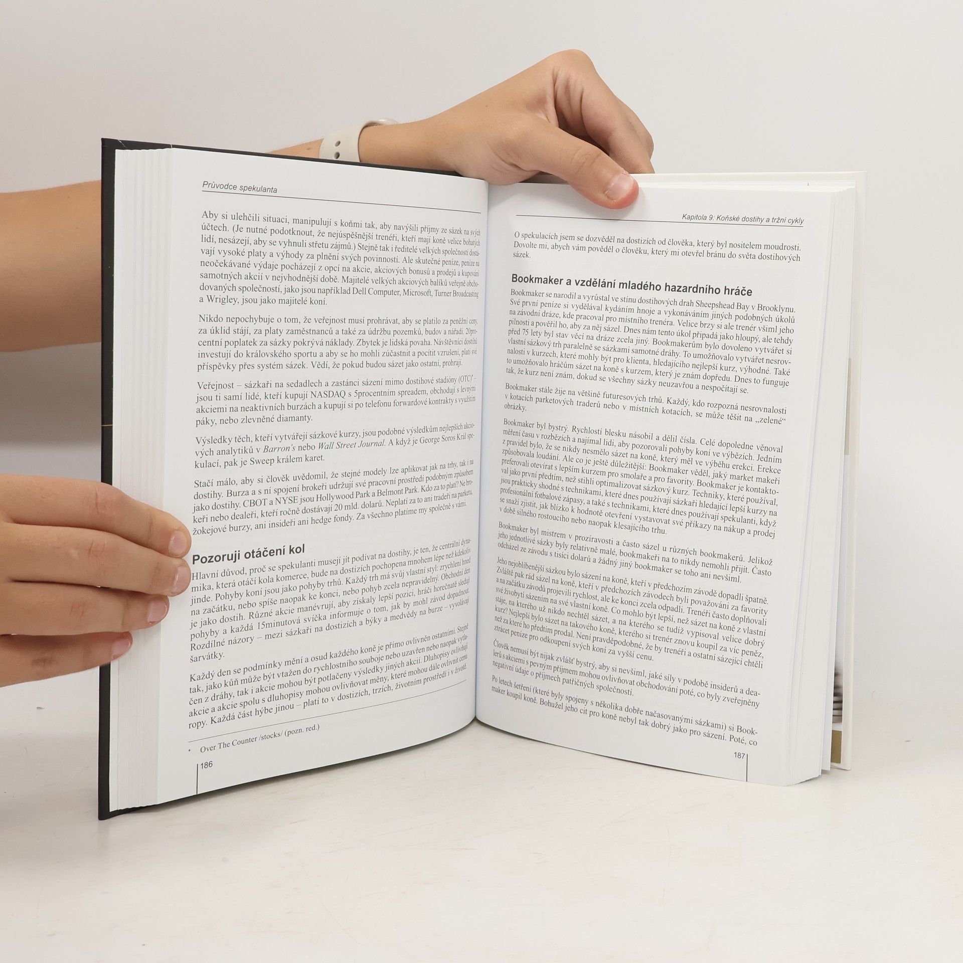 Anotace Kniha známého spekulanta je nezaměnitelnou biblí pro každého, kdo chce dosáhnout úspěchu na komoditních trzích. Autor vysvětluje způsob myšlení a chování během obchodování na trhu. Krok za krokem podrobně popisuje jak techniku, tak i styl svého obchodování. Kniha bude užitečná jak pro začátečníky, tak i pro profesionální tradery. Publikace, která je ve Spojených státech bestsellerem, bude velice cenná pro všechny zájemce o finanční trhy, neboť je unikátním zdrojem informací o myšlení jednoho z nejúspěšnějších traderů 90. let. Z obsahu Úvodem Předmluva Poděkování Starý trader a jen Kapitola 1: Hodiny na Brighton Beach Kapitola 2: Paniky a ti, co přinášejí smůlu Kapitola 3: Delfští věštci a věda Kapitola 4: Ztráty, comebacky, trendy a počasí Kapitola 5: Výhry a samostatnost Kapitola 6: Podstata her Kapitola 7: Základní stolní hry Kapitola 8: Hazard Kapitola 9: Koňské dostihy a tržní cykly Kapitola 10: Klam a grafy Kapitola 11: Sex Kapitola 12: Zisk a náhoda: vědecký styl Kapitola 13: Spojení s monitorem Kapitola 14: Hudba a počítání Kapitola 15: Ekologie trhů Závěr Poznámky Vybraná literatura