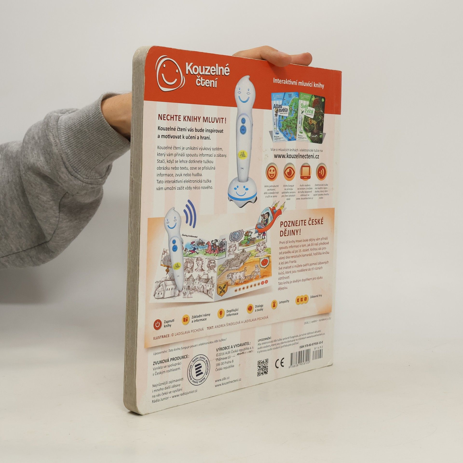 Interaktivní mluvící kniha Hravé české dějiny z edice Kouzelné čtení zabaví děti již od 6 let na dlouhou dobu. Knihu lze zároveň využít jako doplněk pro výuku dějepisu. První díl knihy Hravé české dějiny vám přináší spoustu informací o tom, jak žili naši předkové od pravěkuaž po 15. století. Knihou vás provází dva nerozluční kamarádi - holčička Anička a její pes Franta. V knize nechybí zábavné kvízy, které jsou rozděleny do 3 různých obtížností. Pomocí kvízů si můžete ověřit získané vědomosti. Kniha obsahuje přes 2300 zvuků a textů. Kniha vznikla ve spolupráci s Českým rozhlasem. Namluvili Otakar Brousek ml., Tereza Bebarová a Jana Holcová.