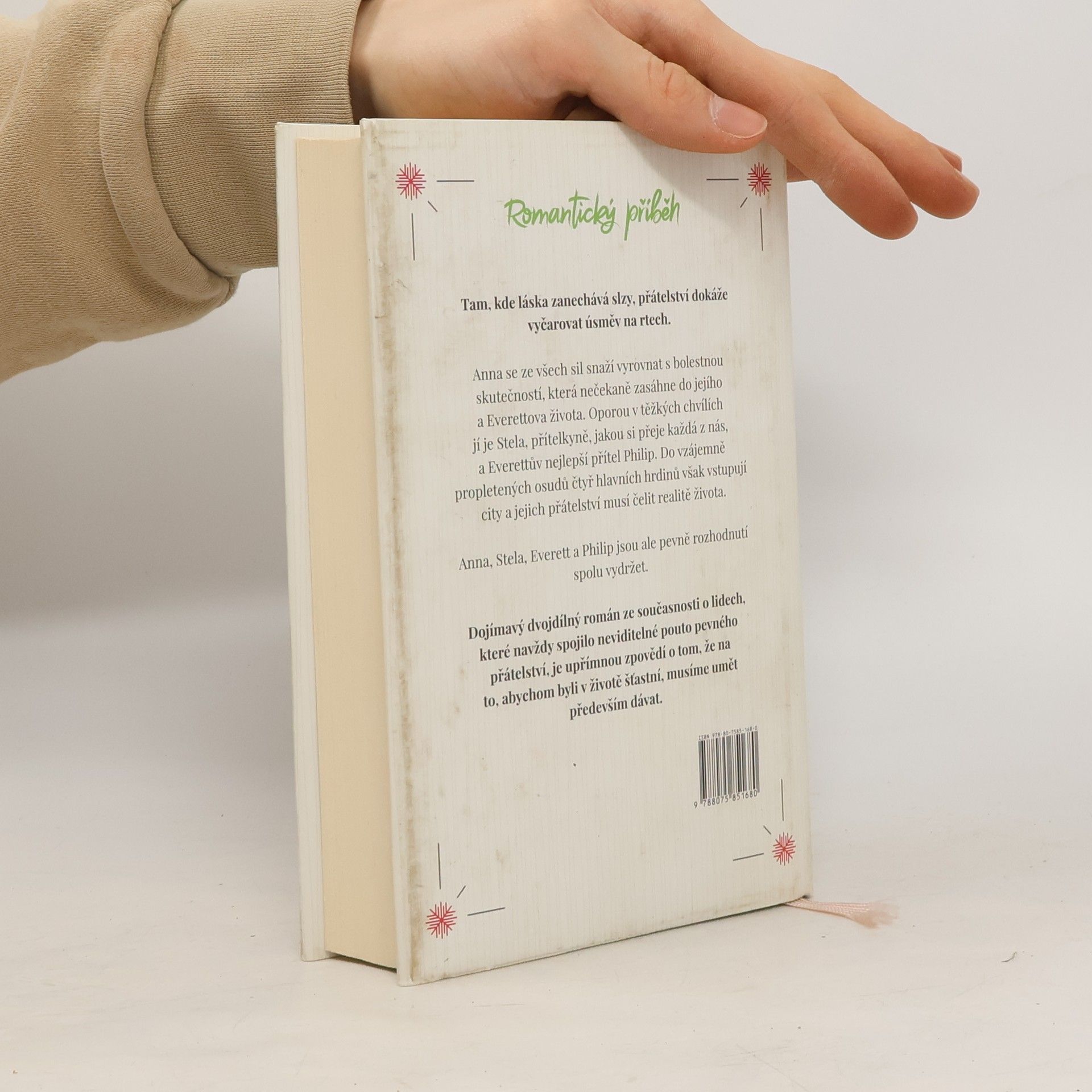 Tam, kde láska zanechává slzy, přátelství dokáže vyčarovat úsměv na rtech. Anna se ze všech sil snaží vyrovnat s bolestnou skutečností, která nečekaně zasáhne do jejího a Everettova života. Oporou v těžkých chvílích jí je Stela, přítelkyně, jakou si přeje každá z nás a Everettův nejlepší přítel Philip. Do vzájemně propletených osudů čtyř hlavních hrdinů však vstupují city a jejich přátelství musí čelit realitě života. Anna, Stela, Everett a Philip jsou ale pevně rozhodnutí spolu vydržet. Dojímavý román ze současnosti o lidech, které navždy spojilo neviditelné pouto pevného přátelství je upřímnou zpovědí o tom, že na to, abychom byli v životě šťastní, musíme umět především dávat.