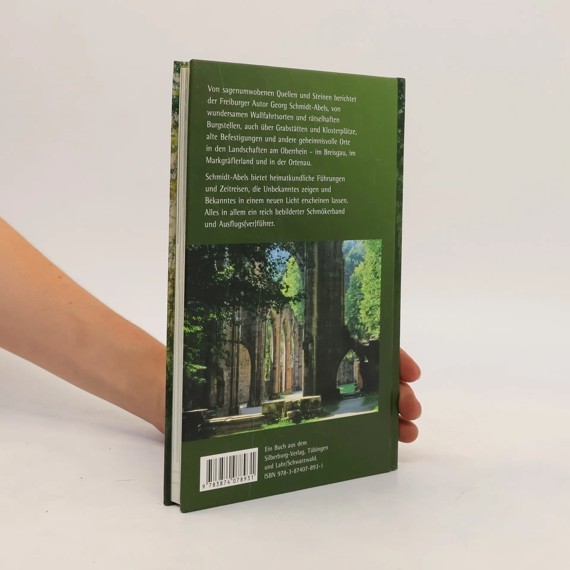 Von sagenumwobenen Quellen und Steinen berichtet der Freiburger Autor Georg Schmidt-Abels, von wundersamen Wallfahrtsorten und rätselhaften Burgstellen, auch über Grabstätten und Klosterplätze, alte Befestigungen und andere geheimnisvolle Orte in den Landschaften am Oberrhein – im Breisgau, im Markgräflerland und in der Ortenau. Schmidt-Abels bietet heimatkundliche Führungen und Zeitreisen, die Unbekanntes zeigen und Bekanntes in einem neuen Licht erscheinen lassen. Alles in allem ein reich bebilderter Schmökerband und Ausflugs(ver)führer.