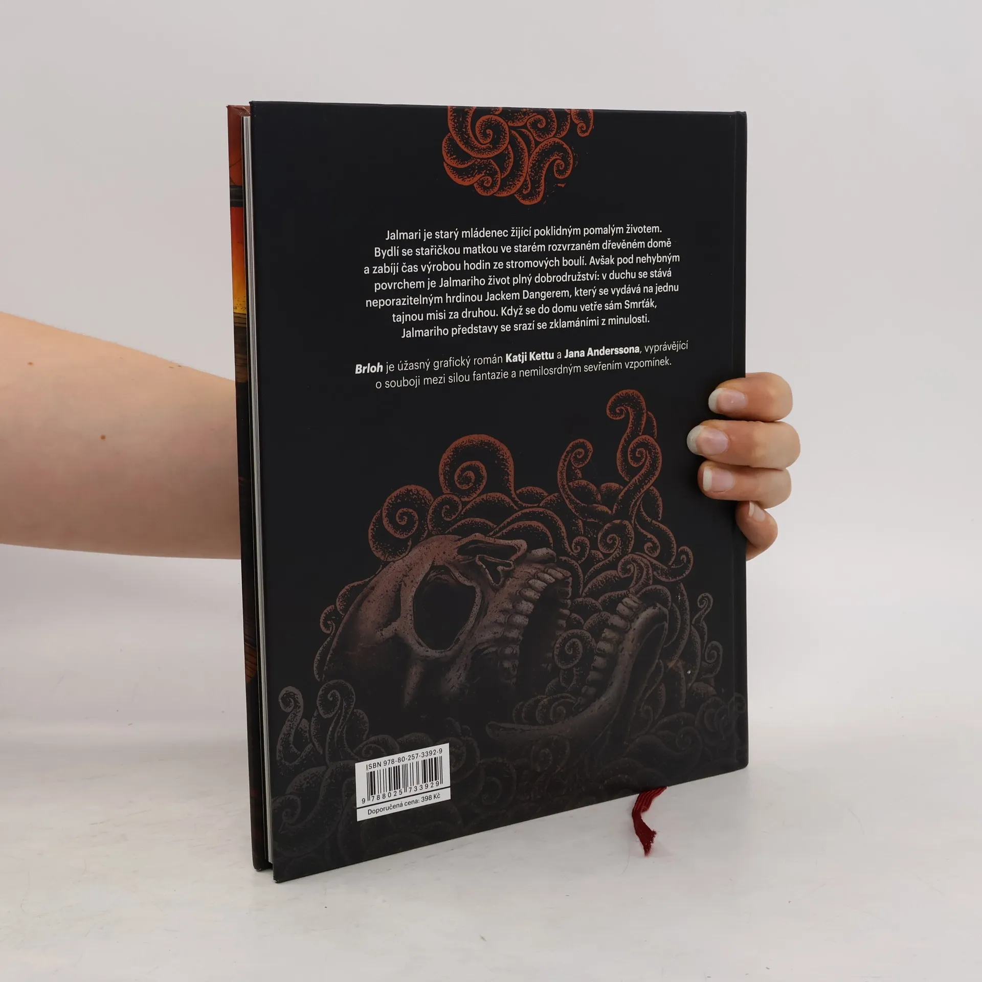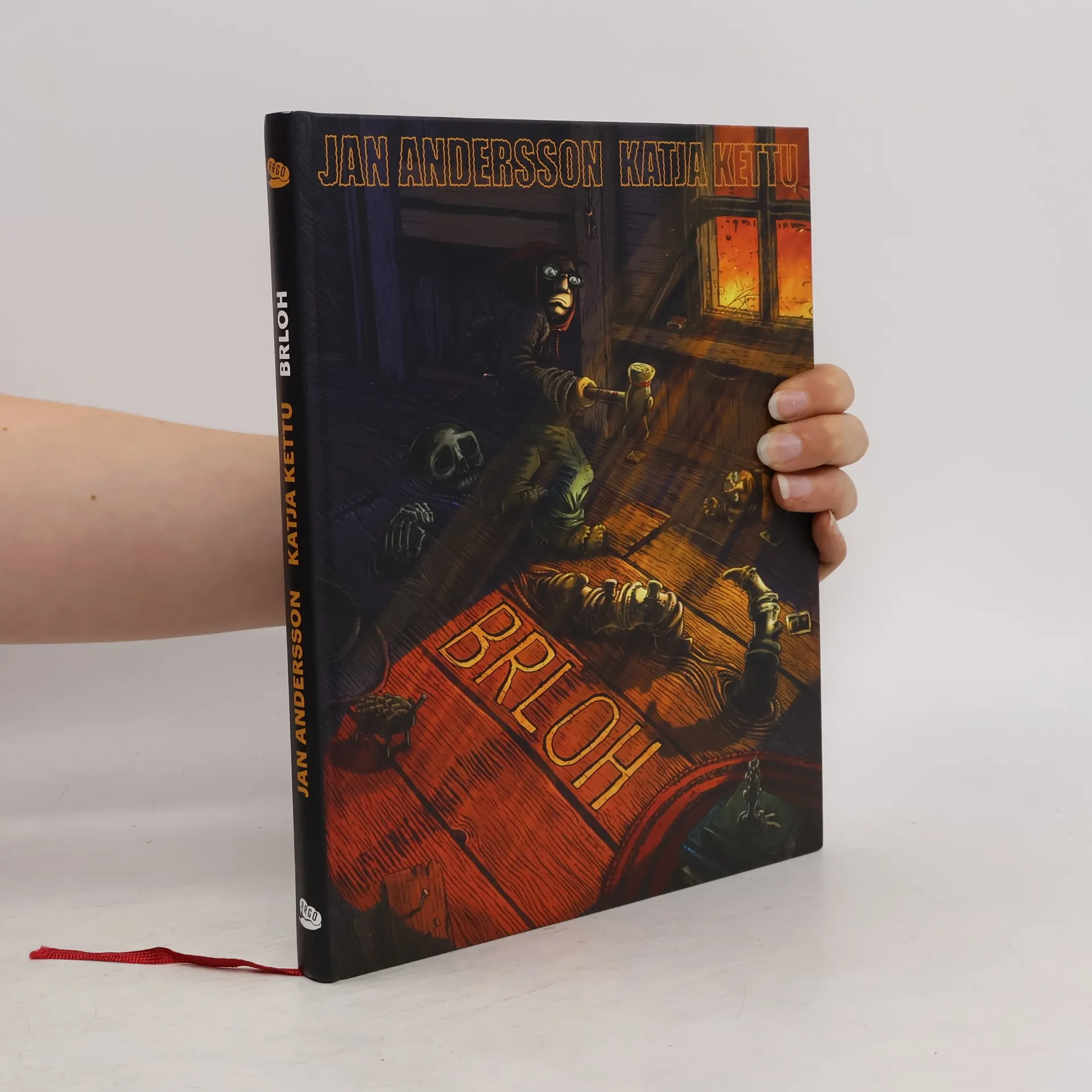 Jalmari je starý mládenec žijící poklidným pomalým životem. Bydlí se stařičkou matkou ve starém rozvrzaném dřevěném domě a zabíjí čas výrobou hodin ze stromových nádorů. Avšak pod nehybným povrchem je Jalmariho život plný dobrodružství: v duchu se stává mladým hrdinou, neporazitelným dobrodruhem, který se vydává na jednu tajnou misi za druhou. Když se do domu vetře sama Smrt, Jalmariho představy se srazí se zklamáními z minulosti. Brloh je úžasný grafický román Katji Kettu a Jana Anderssona, vyprávějící o souboji mezi silou fantazie a nemilosrdným sevřením vzpomínek. Podmanivý vizuální styl vytváří magické prostředí, které nedostanete z hlavy.