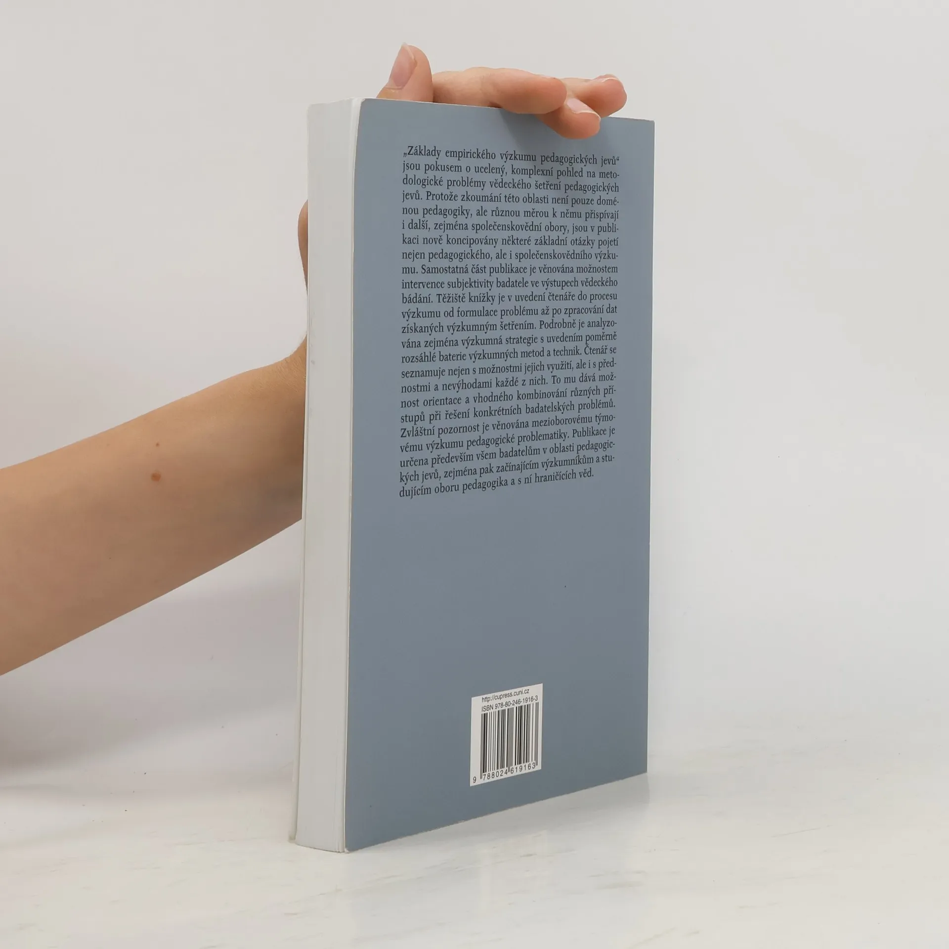 Pokus o ucelený, komplexní pohled na metodologické problémy vědeckého šetření pedagogických jevů. Těžištěm knížky je uvedení čtenáře do procesu výzkumu od formulace problému až po zpracování dat získaných výzkumným šetřením.